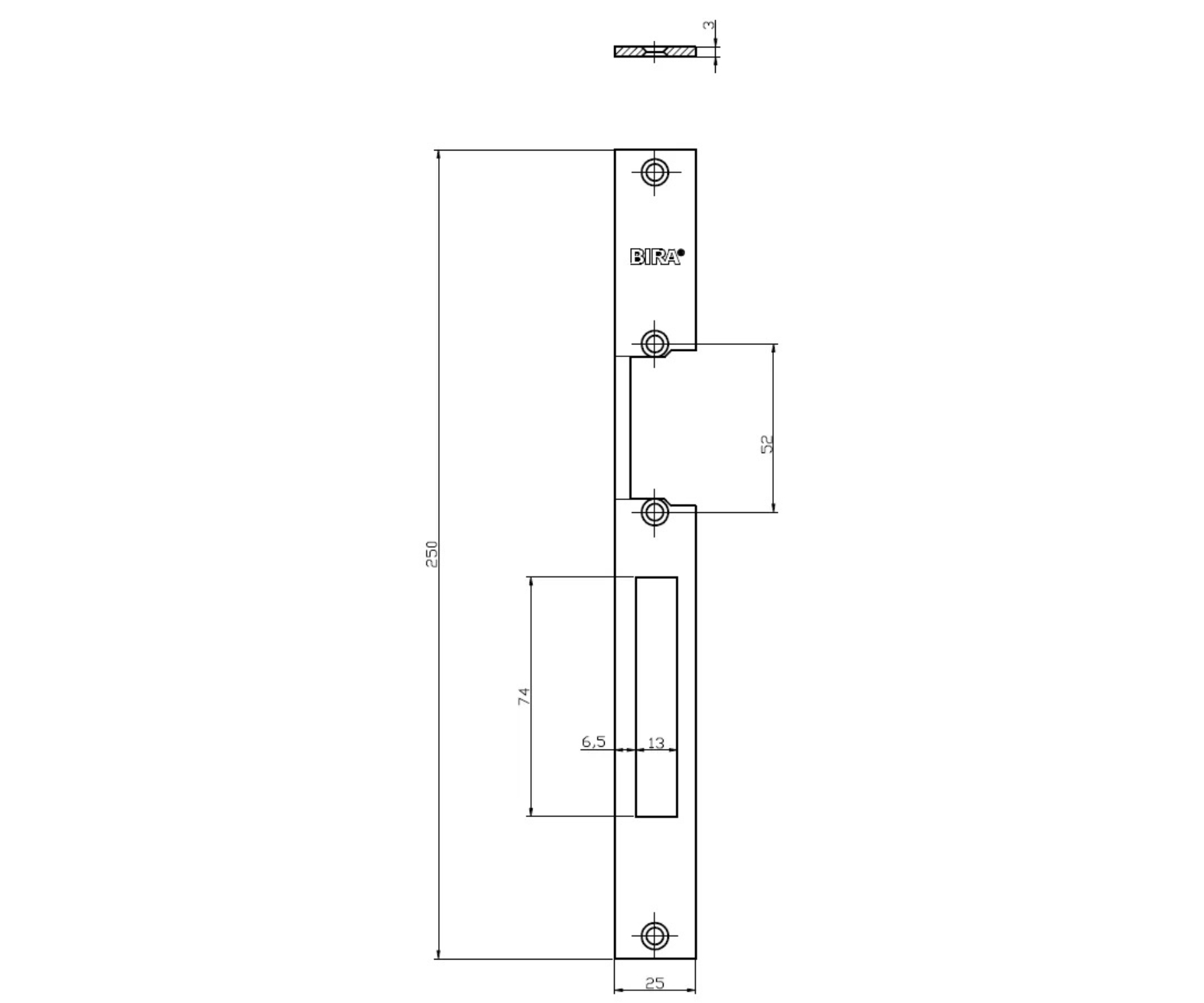 Flat, long, universal plate adapted for left- and right-hand door.; Material: Steel galvanized ; Color: Silver ; Dimensions: 250 x 25 x 3 mm ;