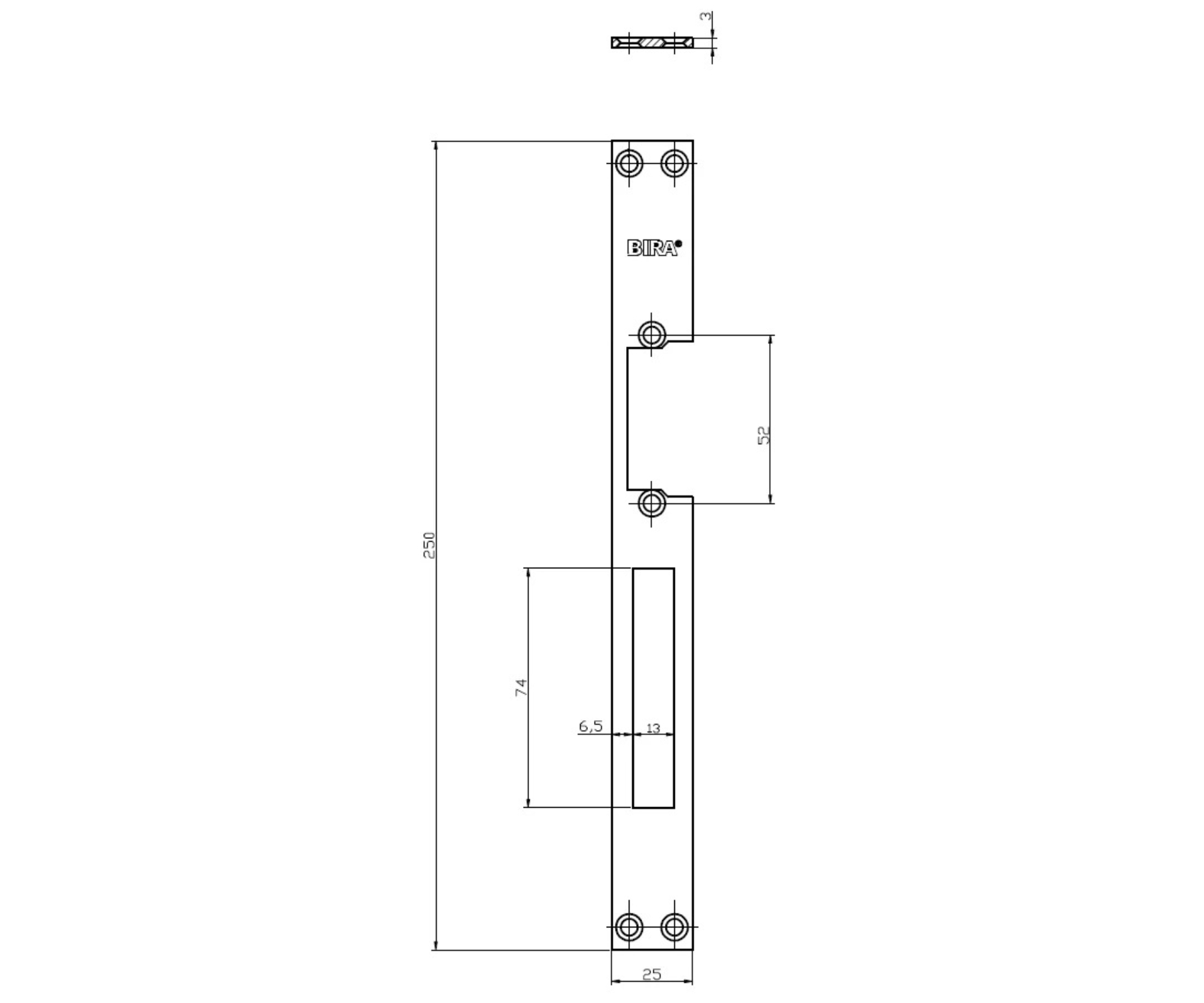 Flat, long, universal plate adapted for left- and right-hand door.; Material: Stainless steel ; Color: Silver ; Dimensions: 250 x 25 x 3 mm ;