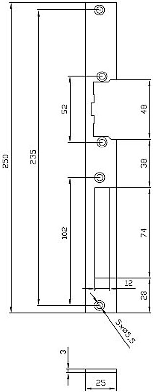 250 x 25 x 3 mm