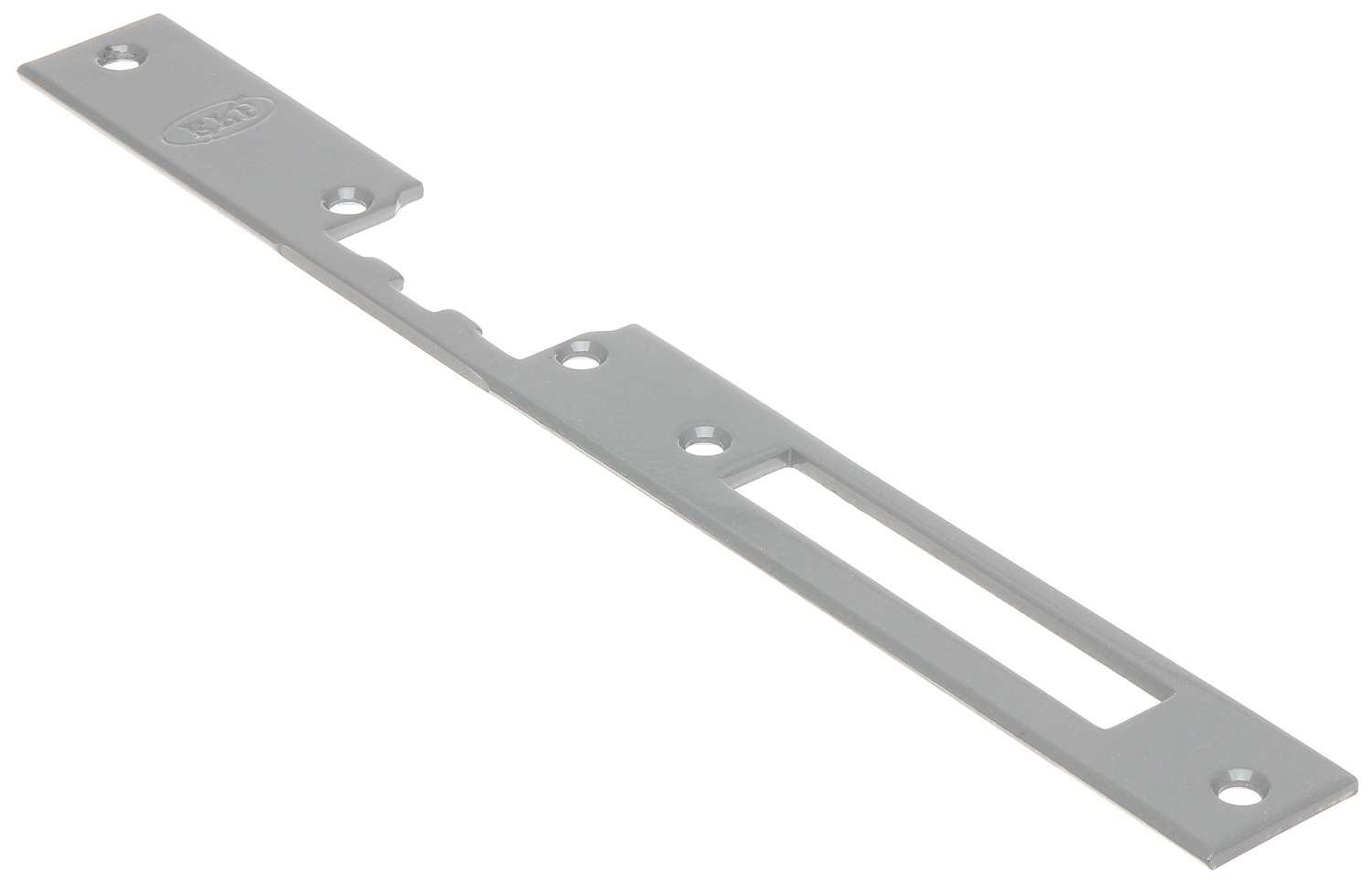 Flat, long, universal plate adapted for left- and right-hand door.;