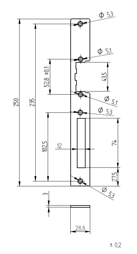 250 x 29 x 3 mm