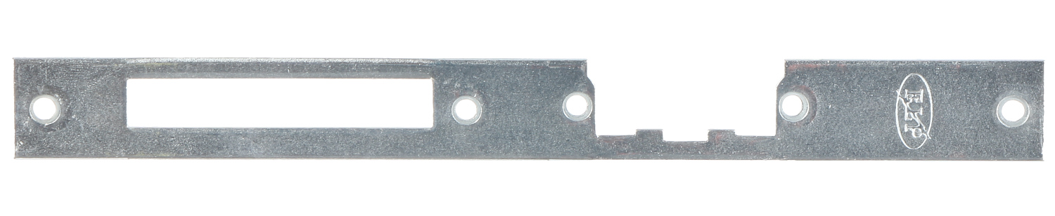 Flat, long, universal plate adapted for left- and right-hand door. Plate is zinc coating covered;