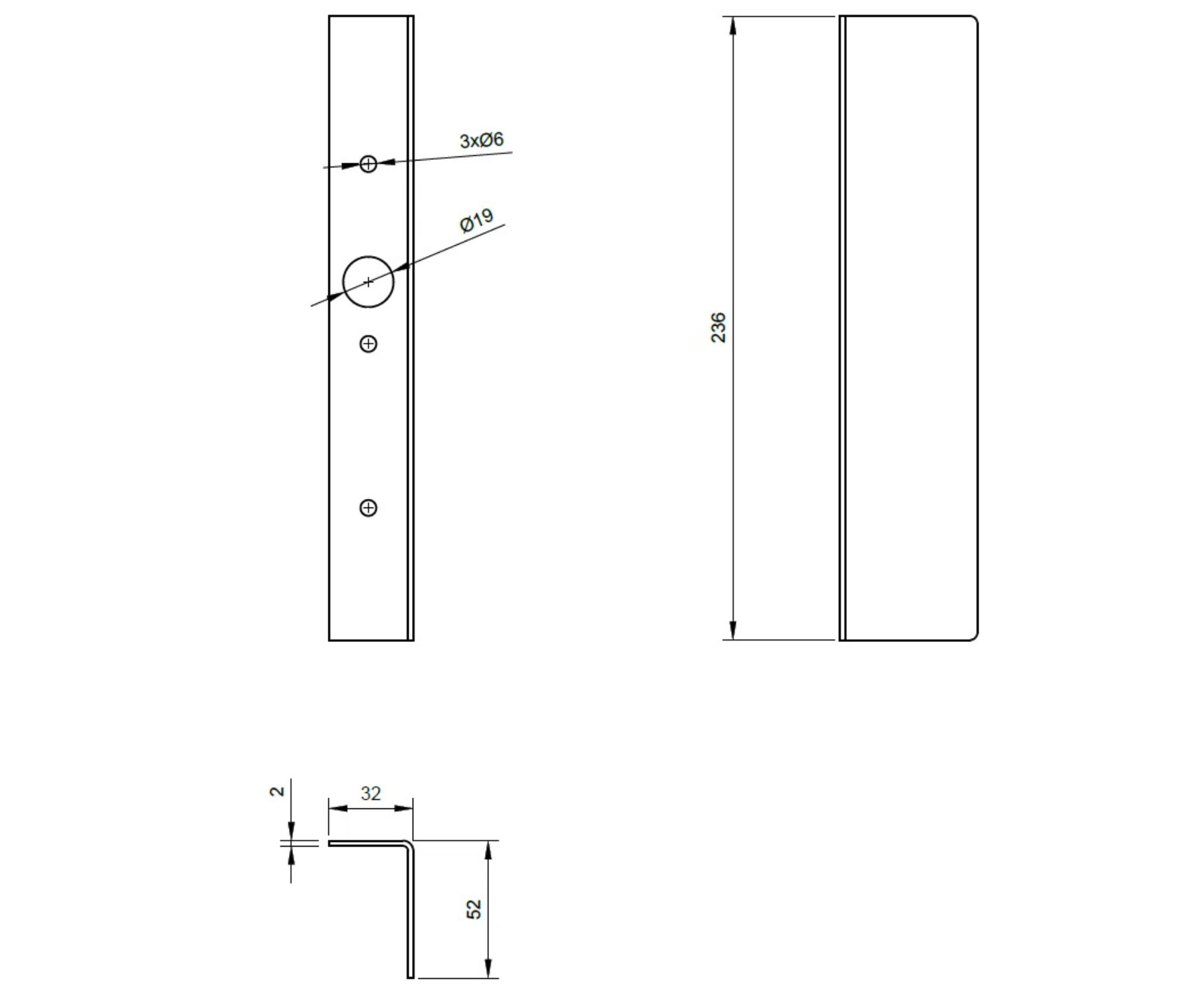 Application: OK-Z3 ; Dimensions: 32 x 236 x 52 mm Plate thickness 2 mm ;