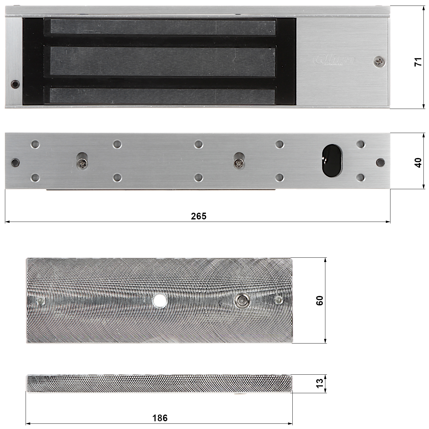 265 x 71 x 40 mm (electromagnetic lock)