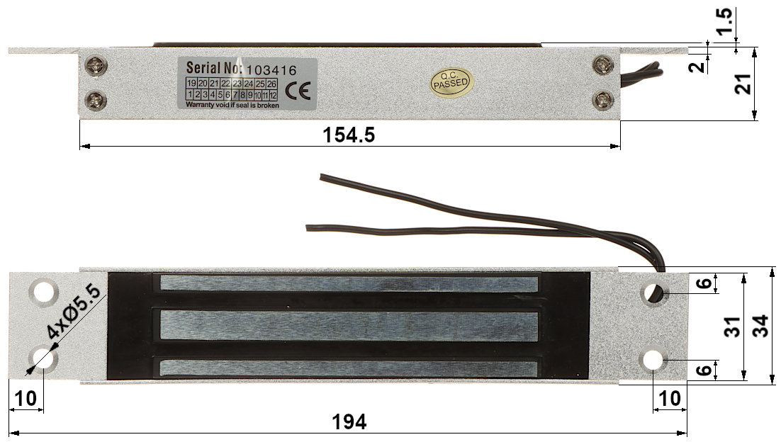 • 194  x 34  x 22 mm (electromagnetic lock)