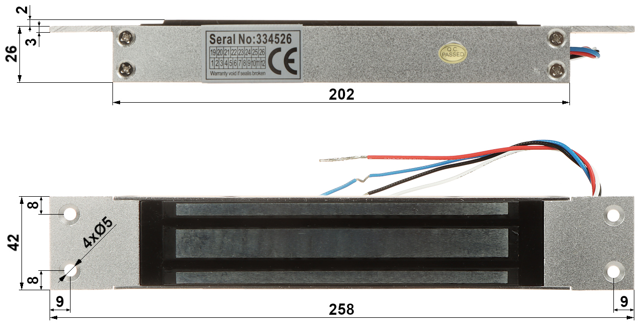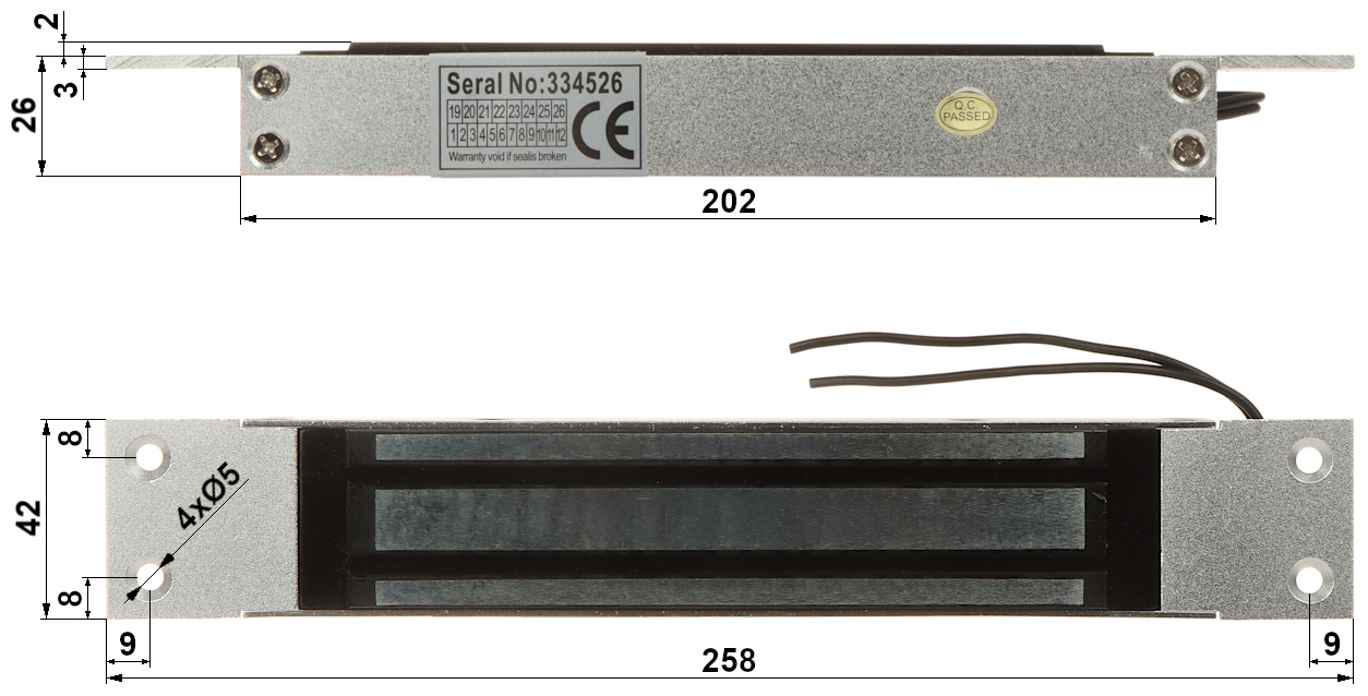 259 x 42 x 28 mm (electromagnetic lock)