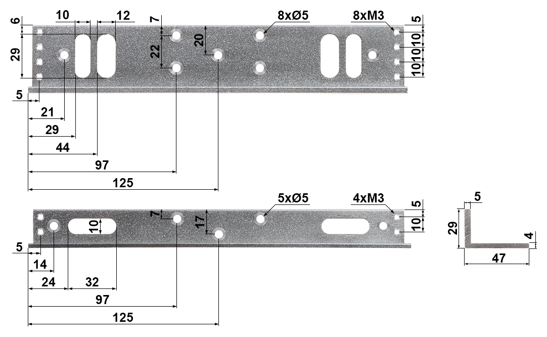 250 x 47 x 28 mm - L-bracket