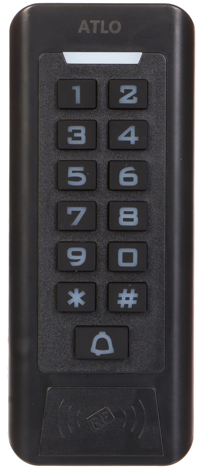 Cards support: Unique EM 125kHz ; Reading distance of prox-keys: max. 5 cm ; Keyboard built-in; Doorbell button; Mobile phones support: It is possible to operate via the Wi-Fi network from the mobile application on the iOS, Android systems ; Communication: Wiegand 26, Wiegand 34 ; Main features: 2000 indexed users Built-in Wi-Fi module ; Housing: Plastic ;