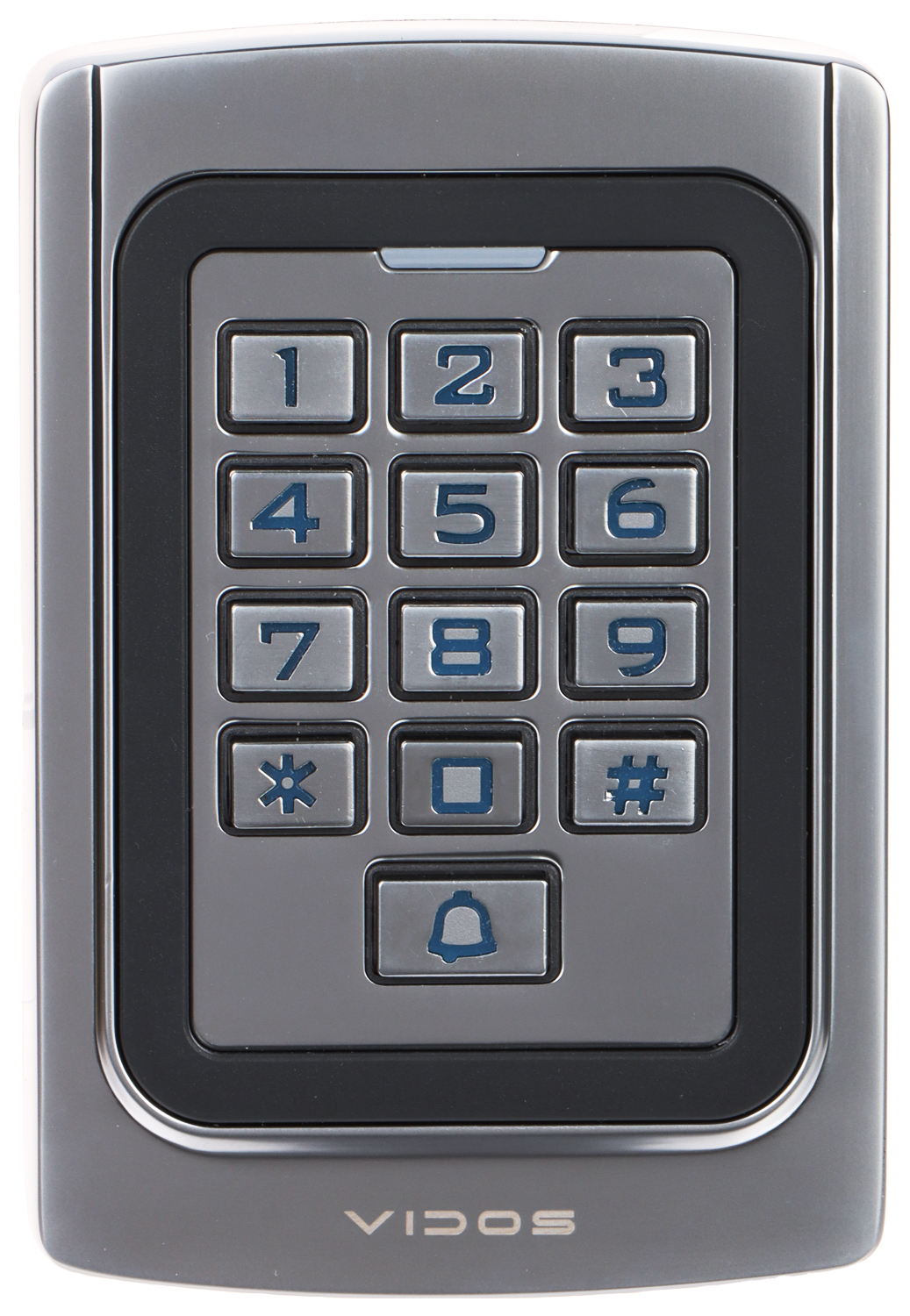Outdoor, autonomous code lock with RFID reader; Cards support: Unique EM 125kHz ; Reading distance of prox-keys: max. 5 cm ; Keyboard built-in; Doorbell button; Communication: Wiegand 26 ; Main features: 2000 indexed users ; Housing: Aluminum alloy ;