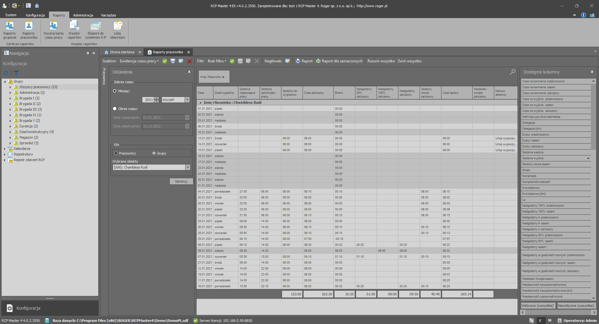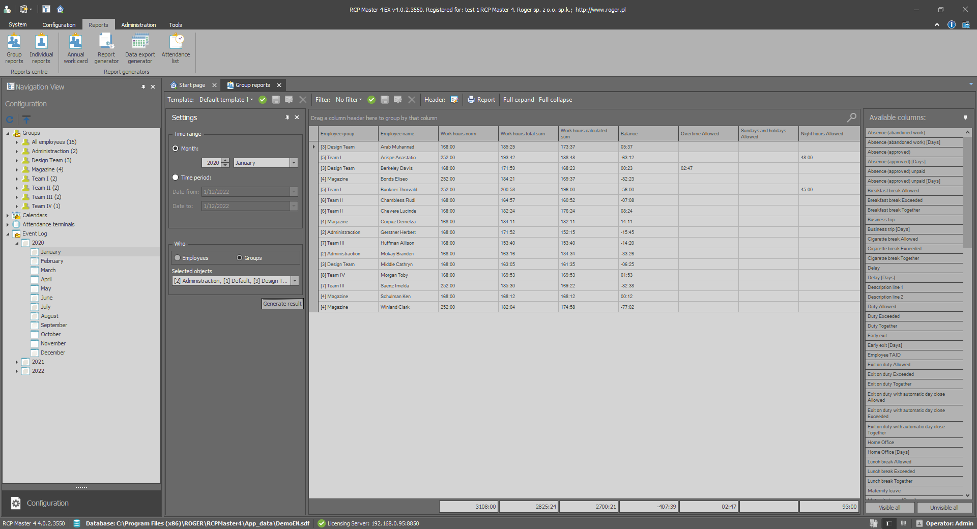 Possibility to create any composition of reports, both cumulative for employee group and individual for particular employees