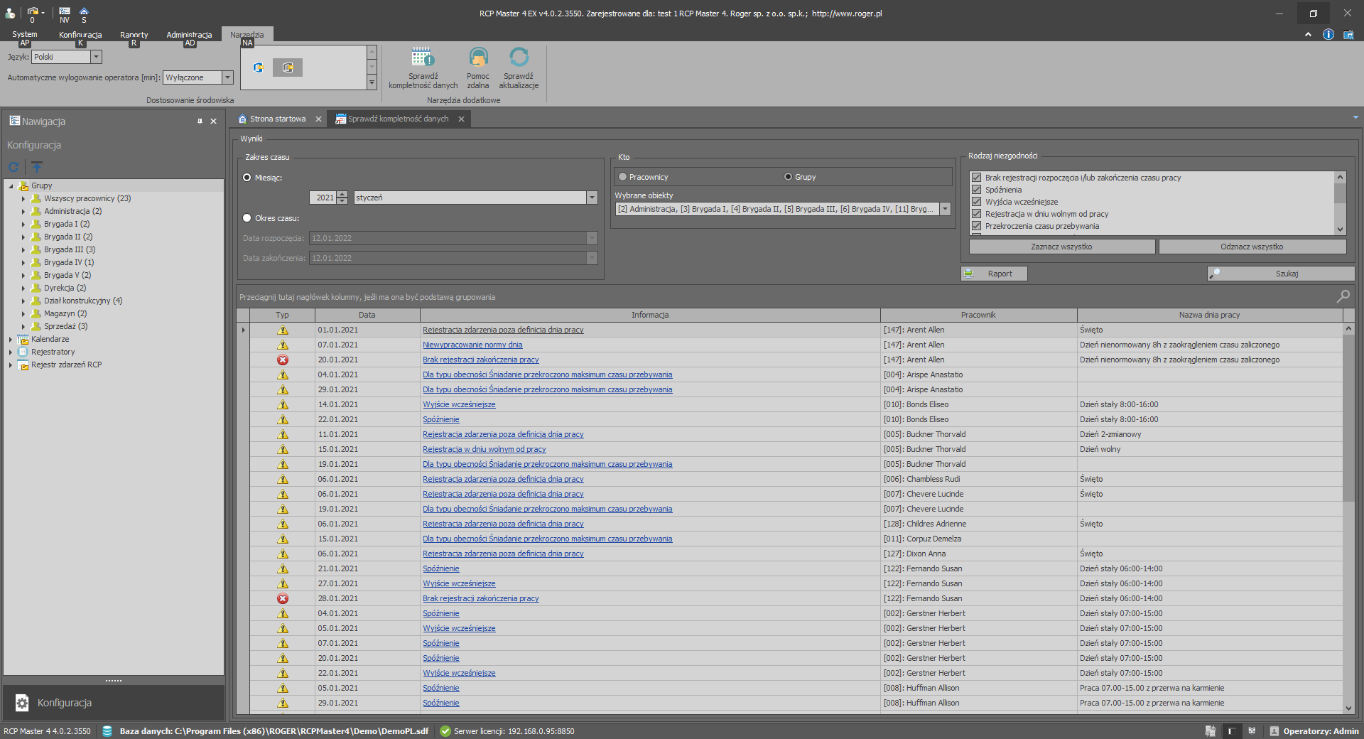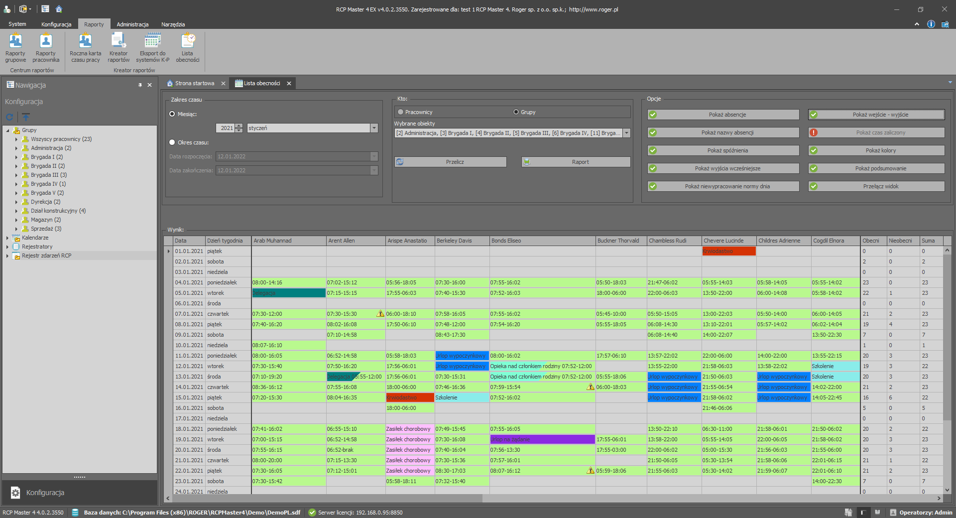 Possibility to define standard and non-standard work time, support for multi-shift working system