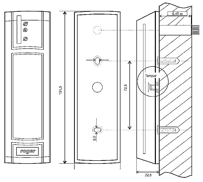 Reading distance of prox-keys: max. 15 cm ; Selected features of the standalone mode: 1000 indexed users ; Main features: The ability to add additional reader (bilateral way door control), Any topology of communication bus, ;