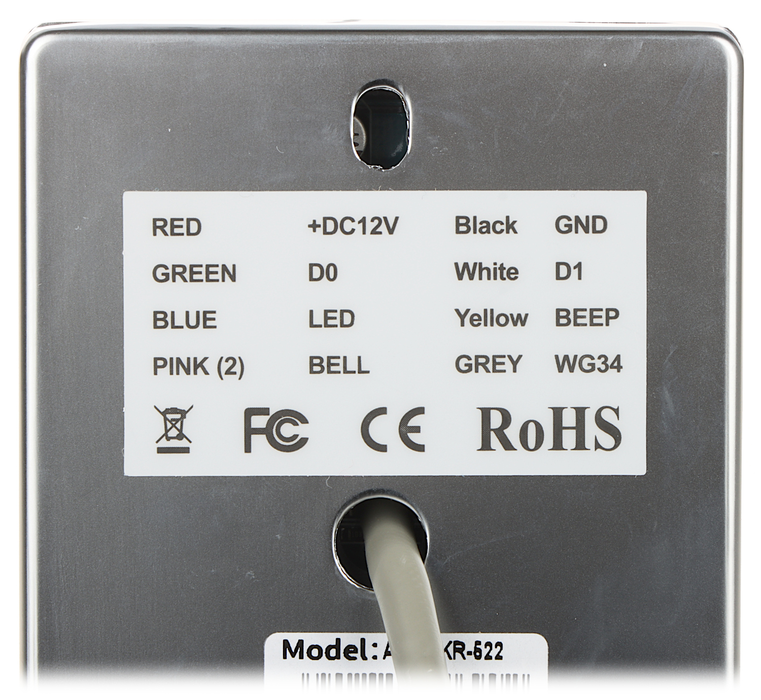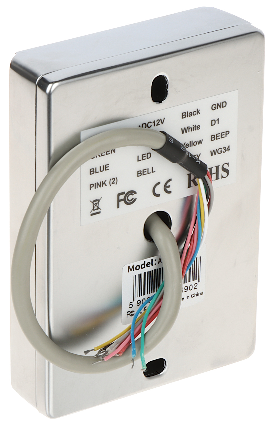Indoor proximity cards and key-fobs reader; Cards support: Unique EM 125kHz ; Reading distance of prox-keys: max. 5 cm ; Keyboard built-in; Doorbell button; Housing: Metal ;