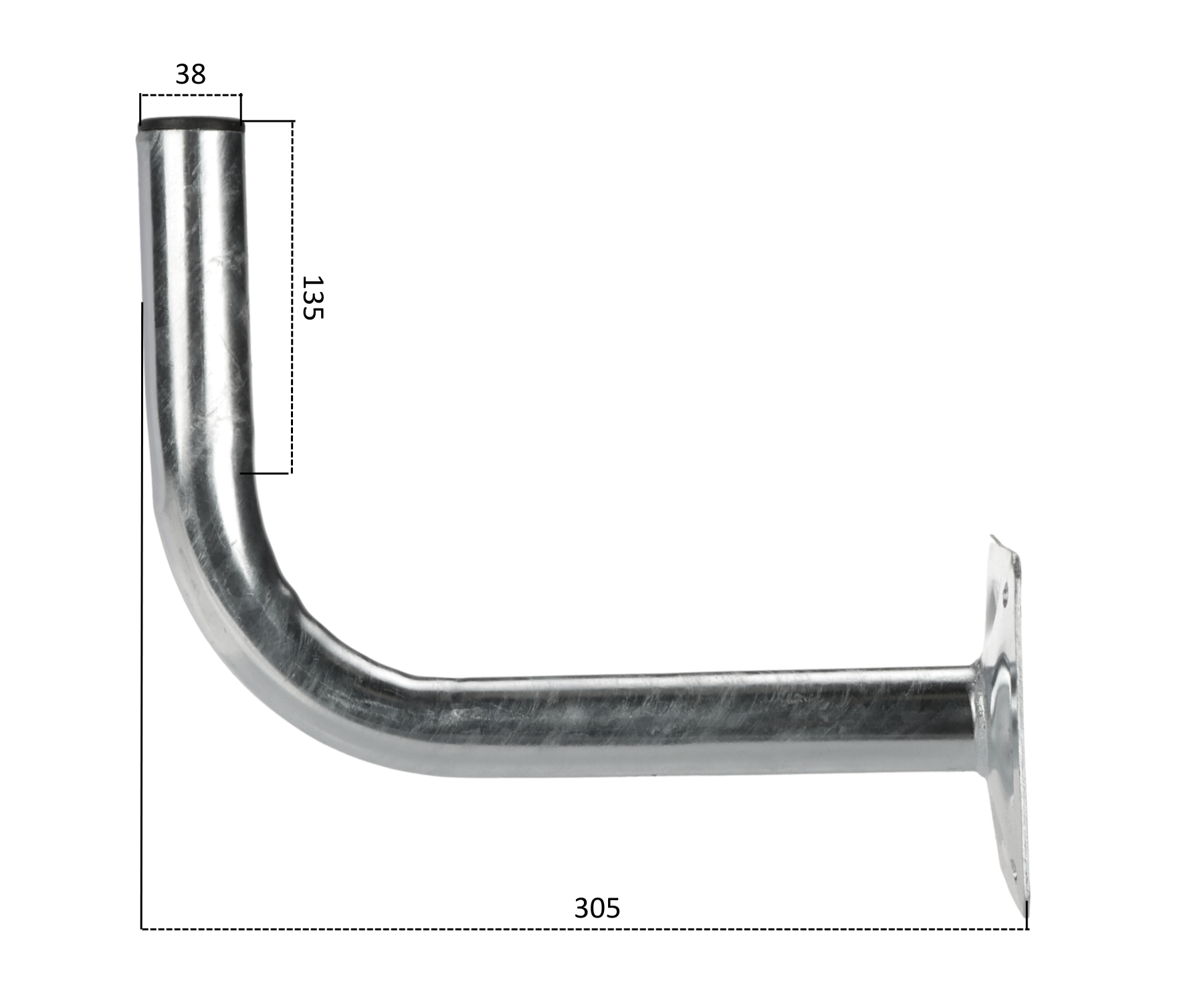 Material: Steel galvanized - Hot-dip galvanized ; Diameter: Ø 38 mm ; Height: 135 mm ; Distance from mounting surface: 305 mm ;