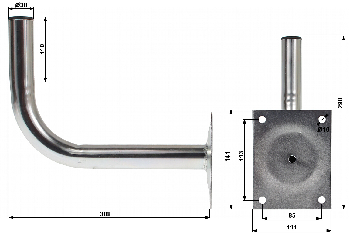 4 x Mounting holes Ø 10 mm