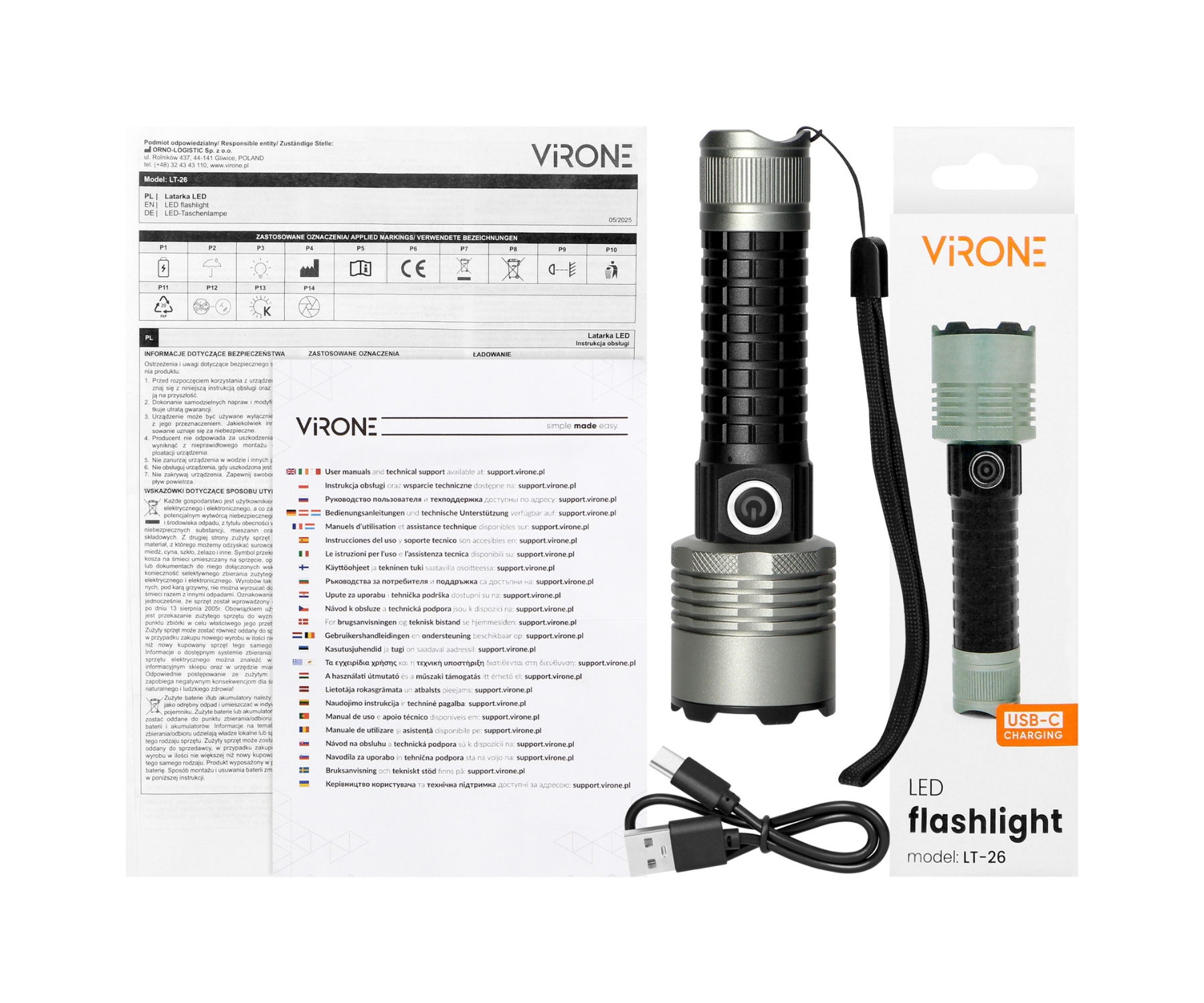 Light source: 1 pcs LED ; Luminous flux: 300 lm (high) 30 lm (low) ; Battery power supply: Alkaline batteries : 2 pcs AA ; Main features: Backup time : 5 h (high), 30 h (low), Light and durable construction, Vertically rotating head (175°) with LED, Impact resistant up to 7 m, Shatterproof lens, "Index of Protection" : IPX4, magnetic base, 2 light modes , Fluent luminosity control ;