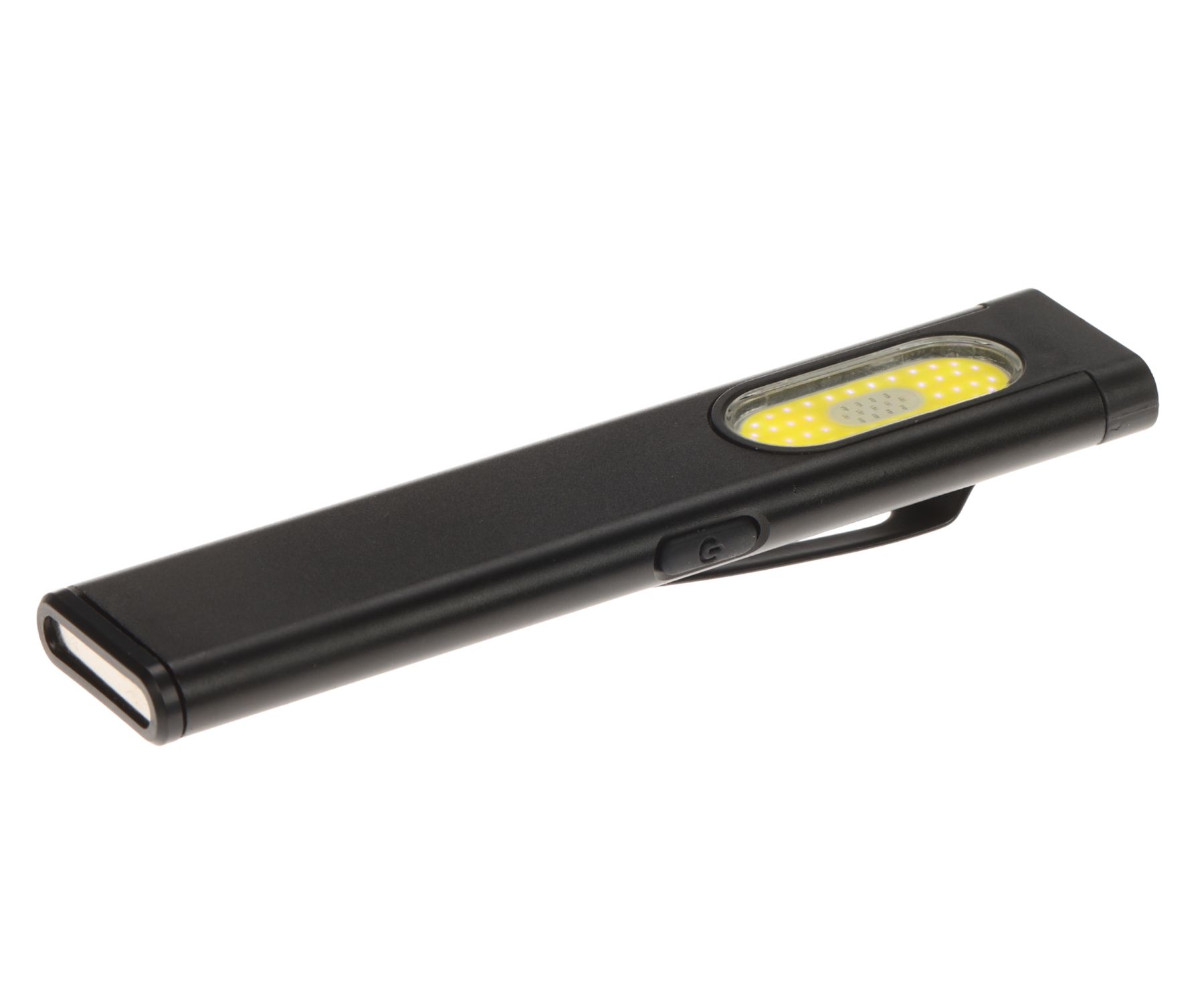 Light source: 3 pcs LED COB diodes ; Luminous flux: 300 lm, 150 lm ; Power supply: 5 V / 450 mAh - Built-in rechargeable battery, ; Main features: The device has a magnetic holder, Metal hanger, Stroboscopic mode ;