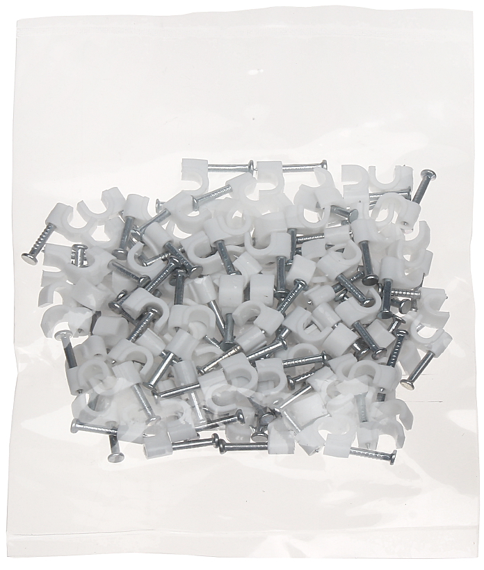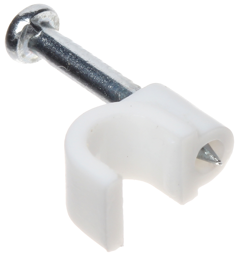 Cable bracket with hardened nail; In package: 100 pcs The price for package ; Cable diameter: 4 mm ;