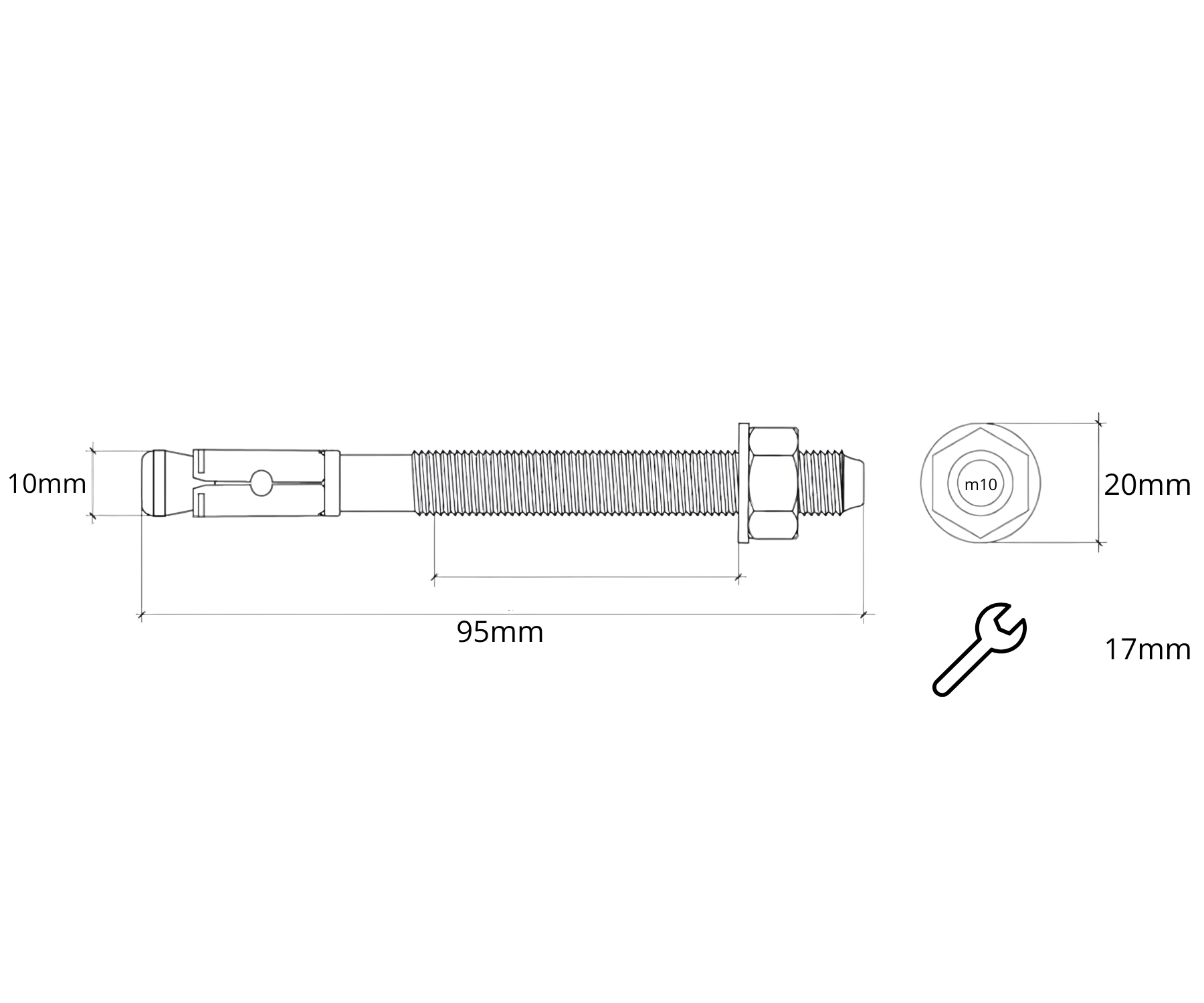 Wrench size: 17 mm