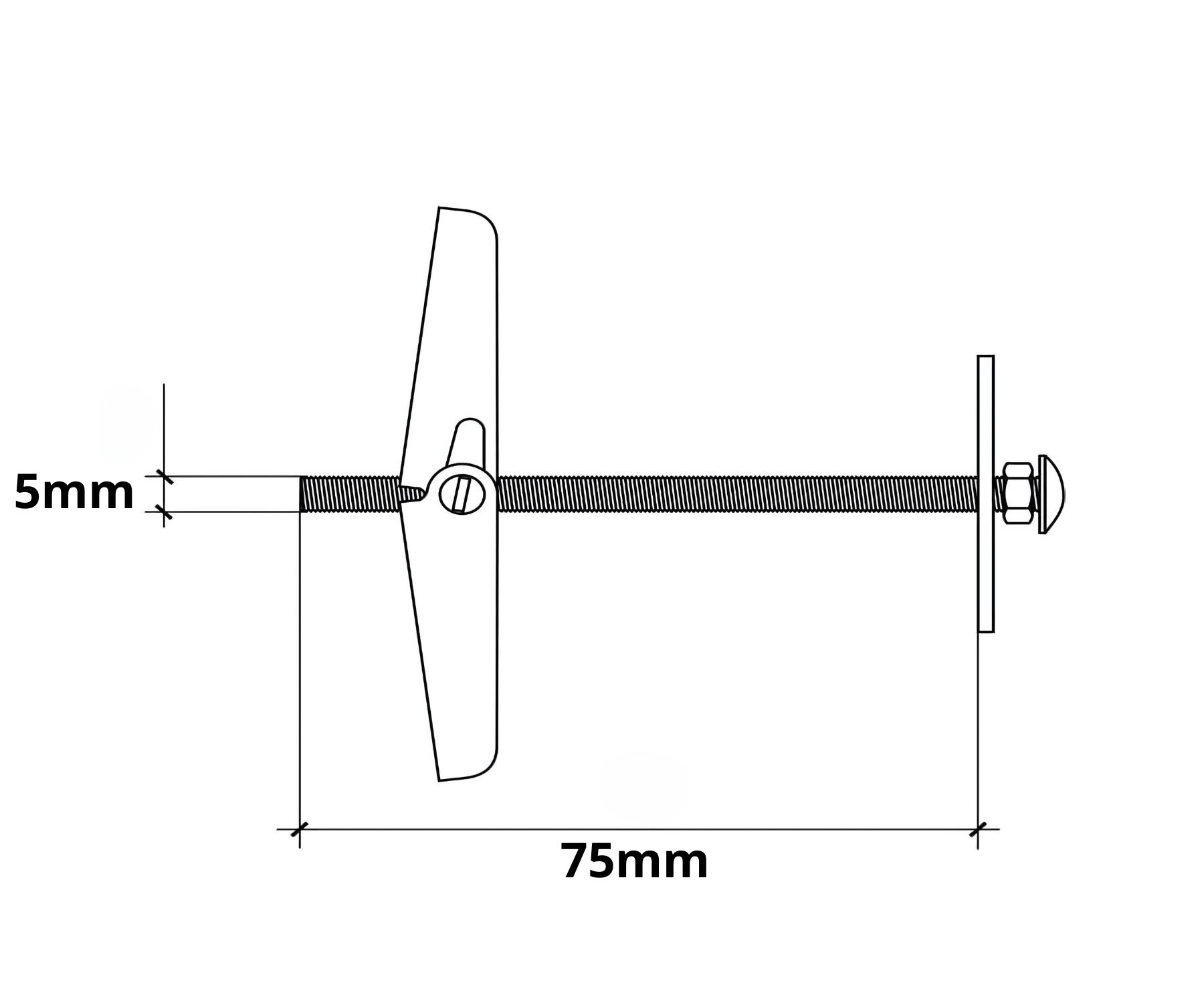 In package: 2 pcs The price for package ; Screw: M5 ; Drilling diameter: 16 mm ; Total length: 75 mm ; Application: plasterboard ;