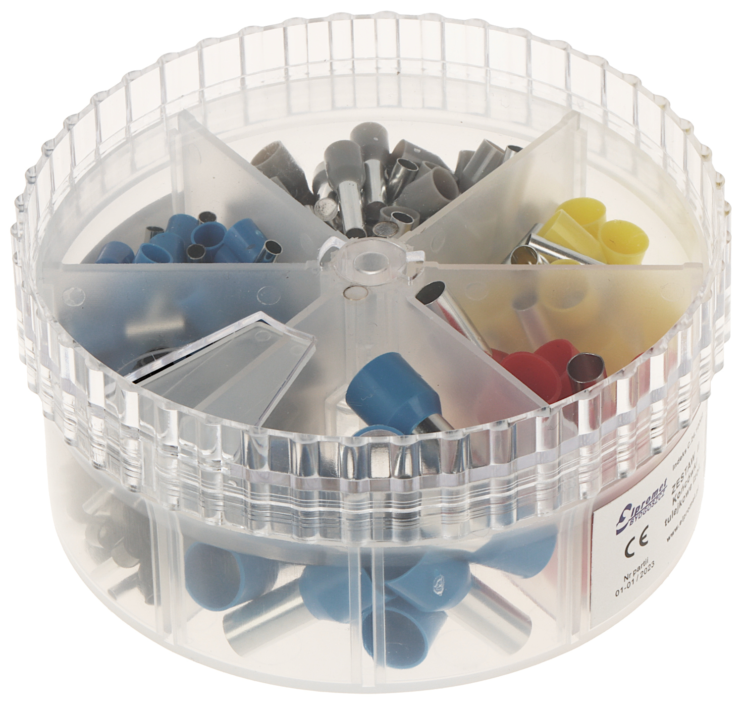 Set of cable ferrules from 1.5 mm2 to 16 mm2 with organizer; Number of pcs. in package: = 185 pcs (total) ;