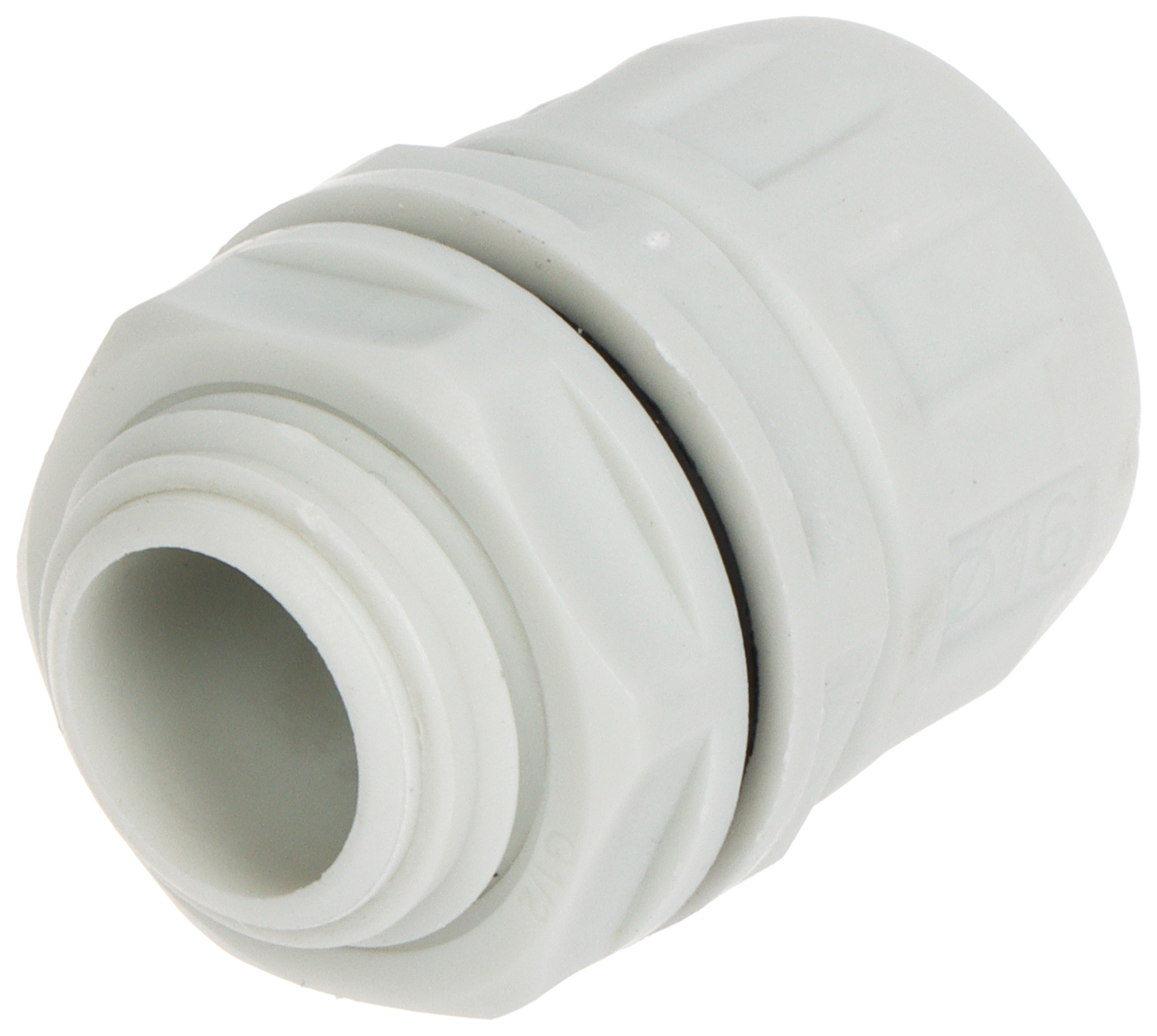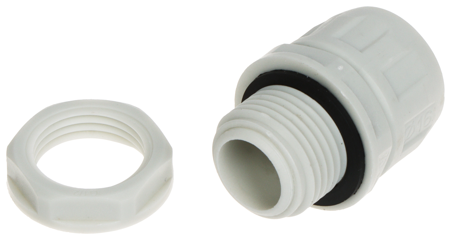 Cable bushing for GUS-16G/30 spiral pipe, screwed. Suitable for mounting boxes with 20mm hole diameter;