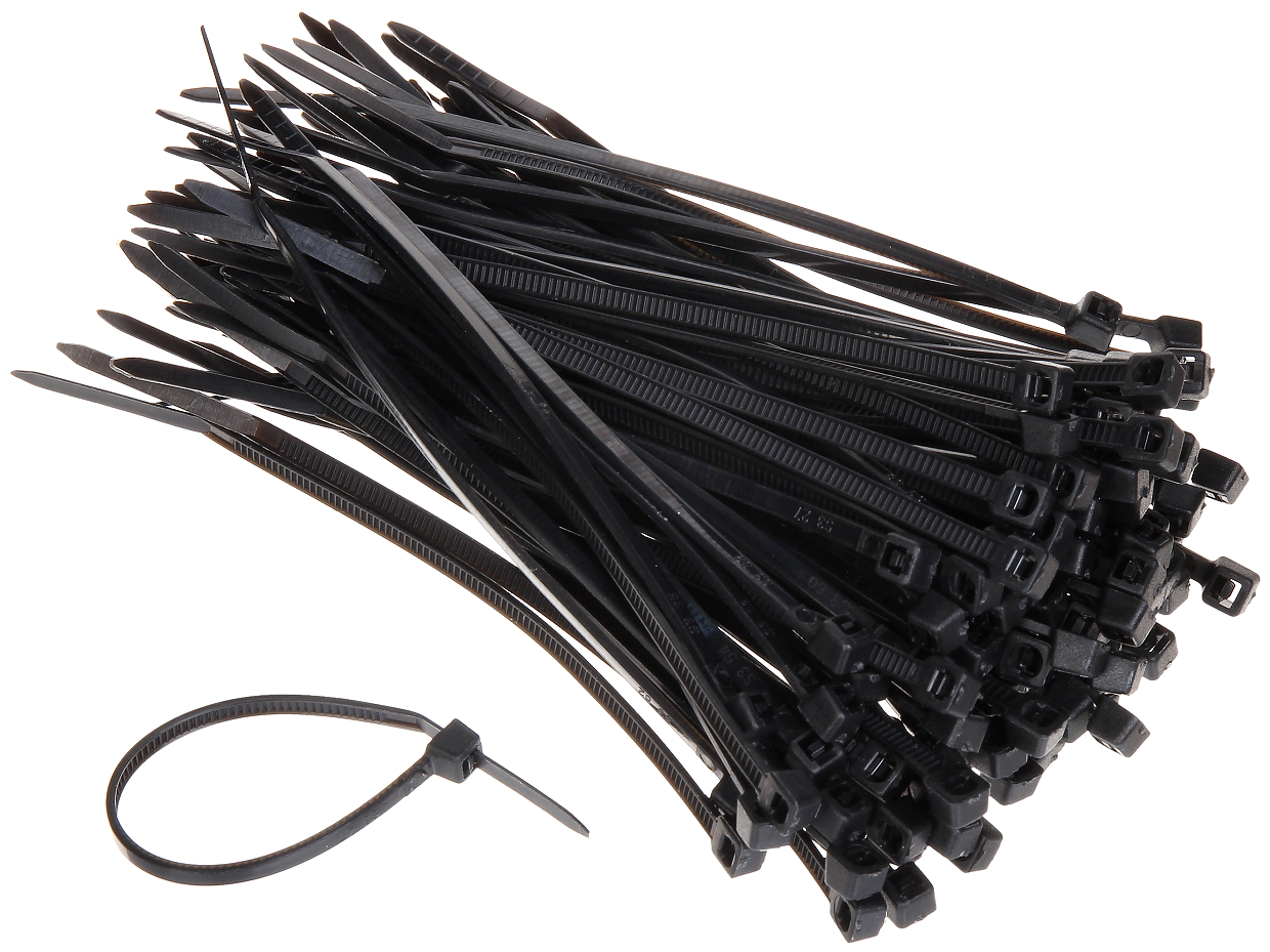 In package: 100 pcs The price for package ; Length: 100 mm ; Width: 2.5 mm ; Material: Nylon 66 ; Tensile strength: 8.2 kg ; Color: Black ;