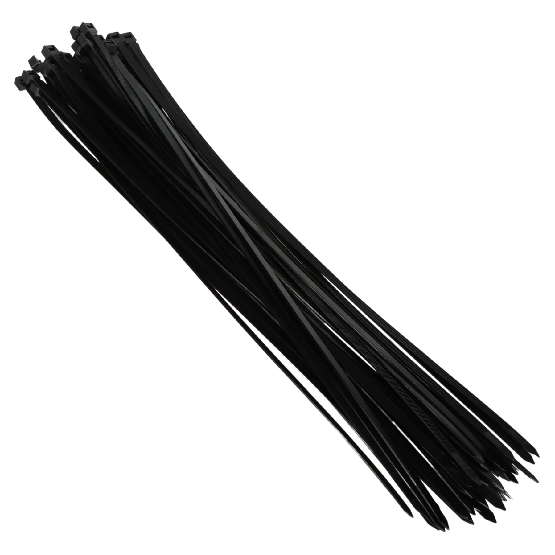 In package: 50 pcs The price for package ; Length: 550 mm ; Width: 9.0 mm ; Material: Nylon 66 ; Tensile strength: 80 kg ; Color: Black ;
