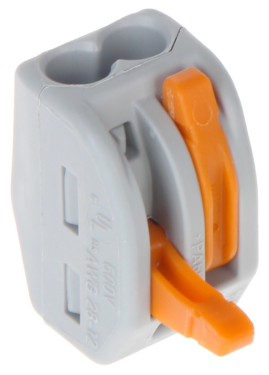 In package: 50 pcs The price for package ; Number of terminal pairs: ; Connector type: 2 x spring terminal ; Wire gauge: 0.08 ... 2.5 mm² - Wire, 0.08 ... 4 mm² - Stranded wire ; Nominal voltage: 400 V ; Rated current: 32 A ; Color: Gray / Orange ;