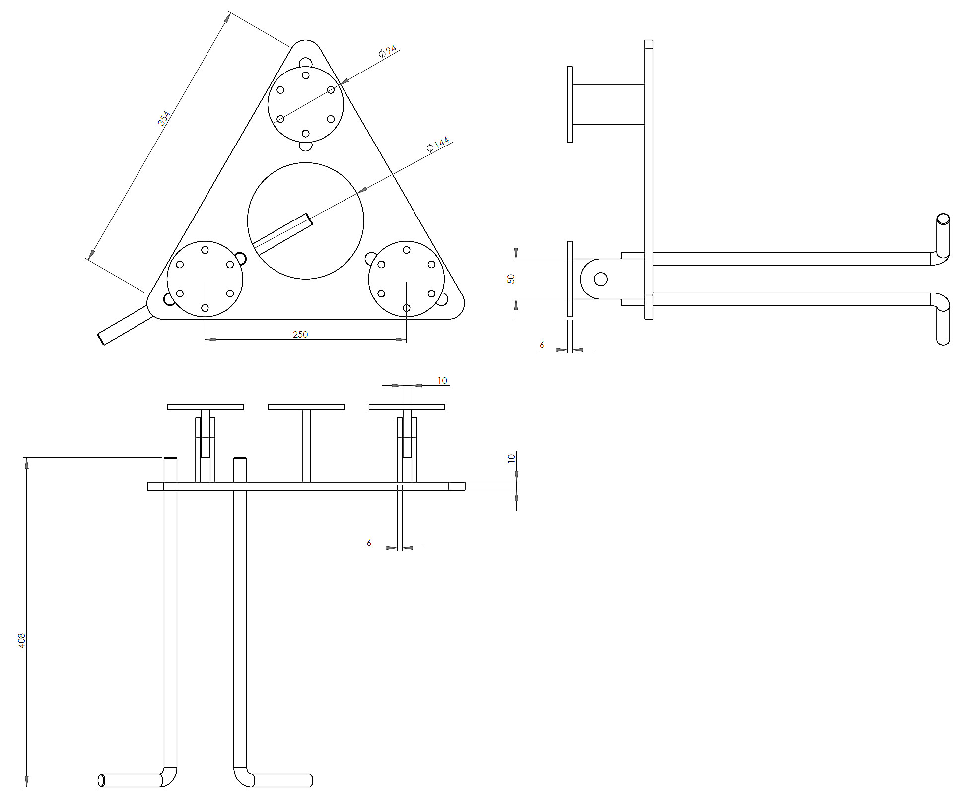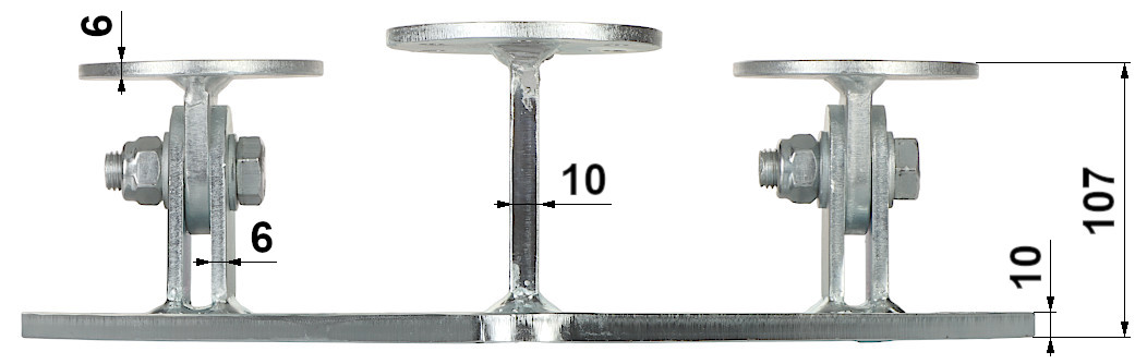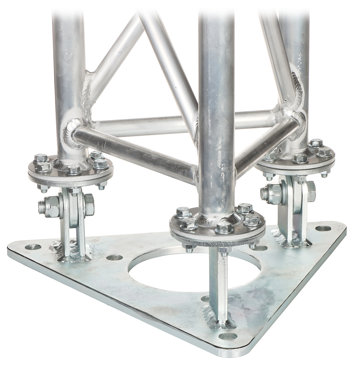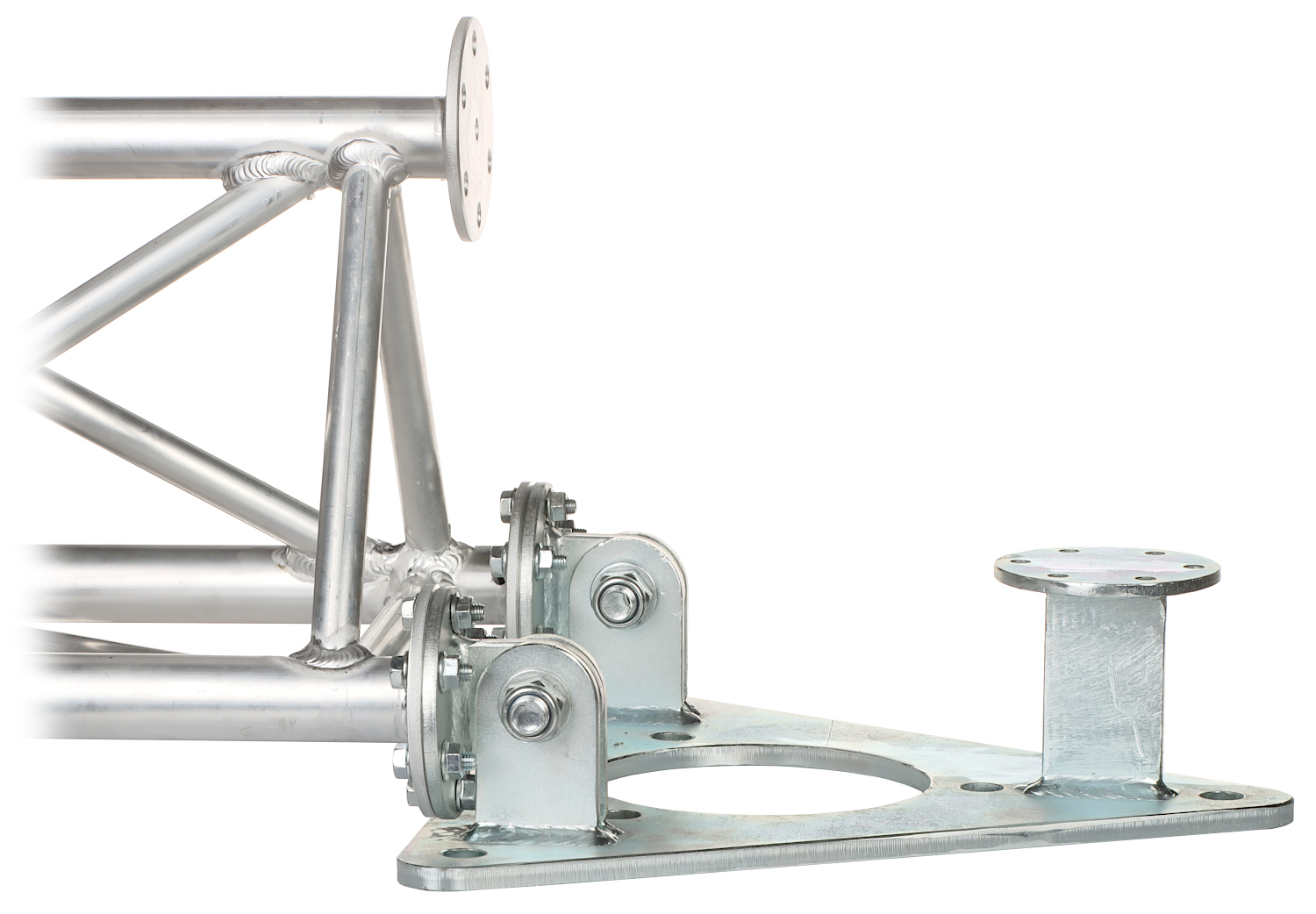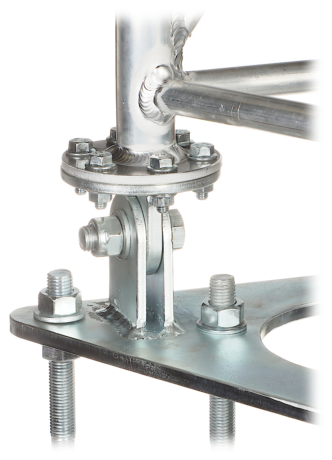 The design allows the mast to tilt up to 90° from the vertical, Plate thickness : 10 mm, Reinforced hinges