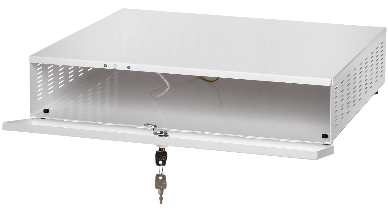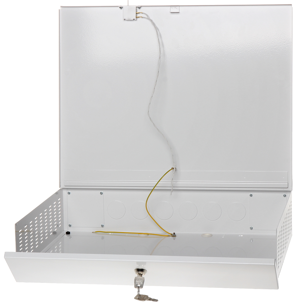 Housing designed to safe DVRs storage; Material: Steel - powder painted ; Tamper protection: TAMPER switch indicating open the cover ; Housing external dimensions: 505 x 405 x 120 mm ;