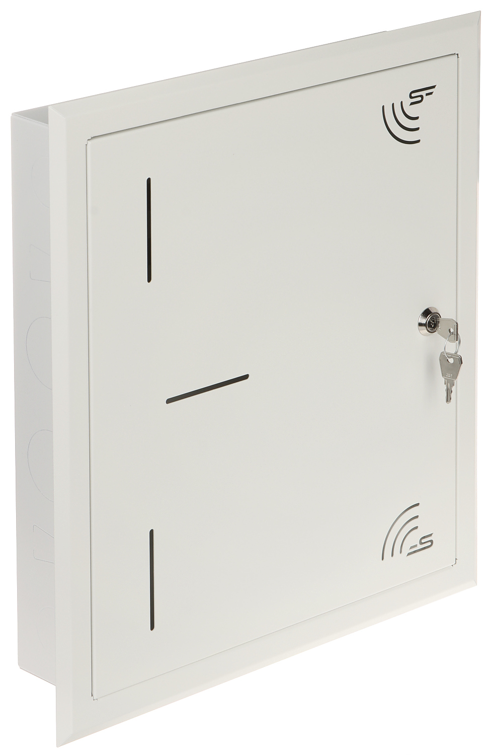 Application: R-TV SAT WLAN ; Color: White ; Main features: The housing passes the WiFi signals, Place for connectors : 8x KEYSTONE, 6x "F", 1x SC duplex, 1x Electric outlet ; External dimensions: 340 x 400 x 75 mm (without flange) ;
