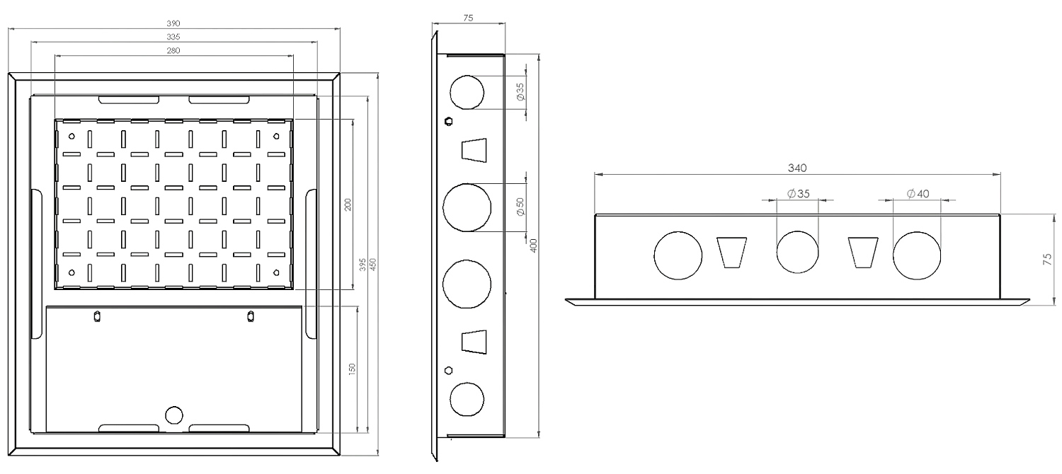 External dimensions: 340  x 400  x 75 mm (without flange)