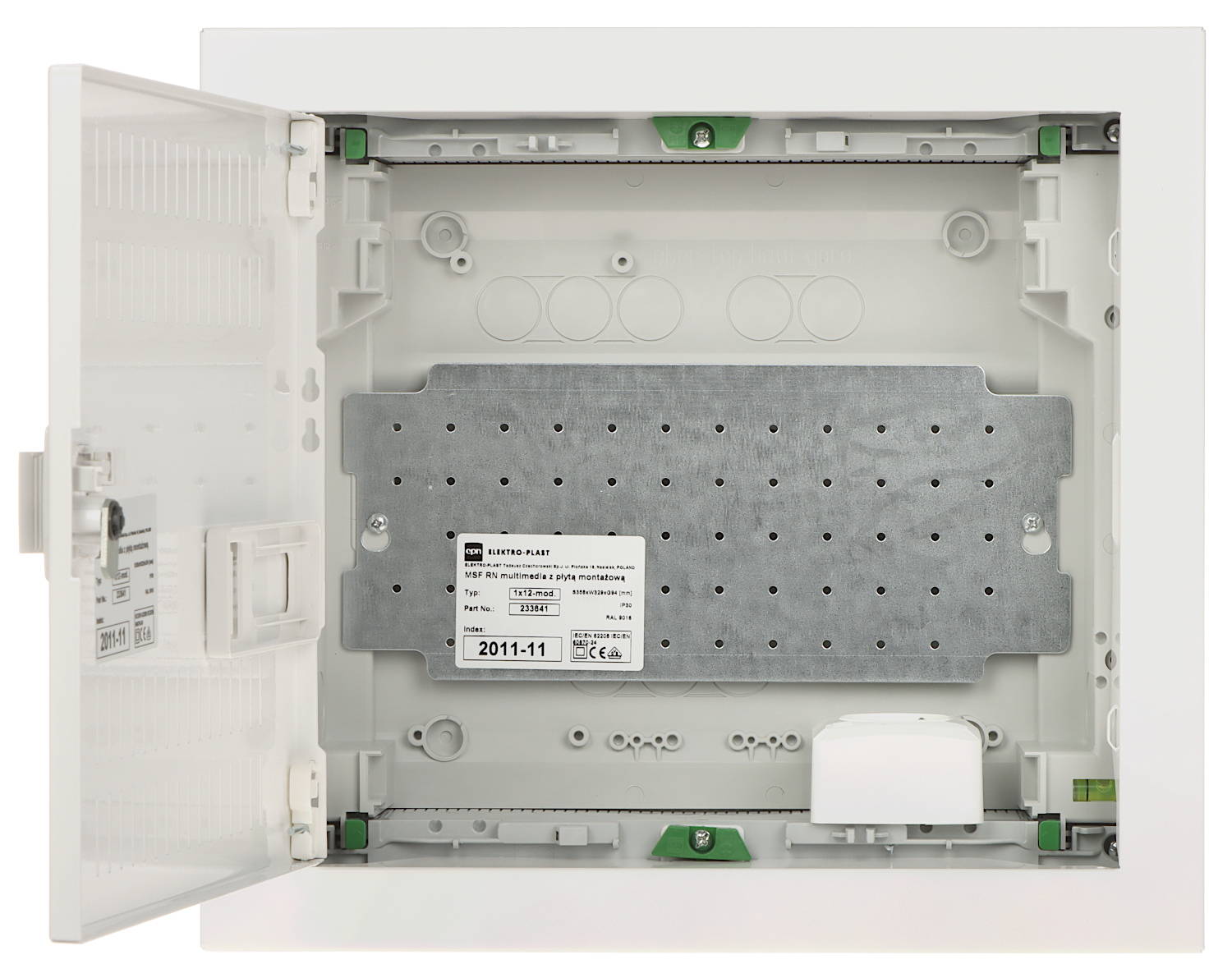 Application: R-TV SAT ; Color: White ; Main features: Possibility of mounting TH-35 chassis, Place for connectors : 1x Electric outlet CEE 7/5 ; External dimensions: 358 x 330 x 100 mm ; Manufacturer / Brand: Elektro-Plast ;