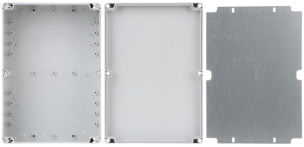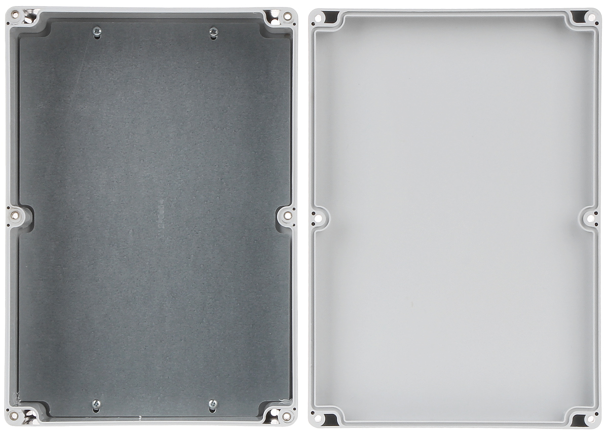 Material: Plastic (ABS) ; Color: Light gray ; Main features: "Index of Protection" : IP65 ; Housing external dimensions: 265 x 185 x 95 mm ; Internal dimensions: 238 x 158 x 68 + 18 mm ;