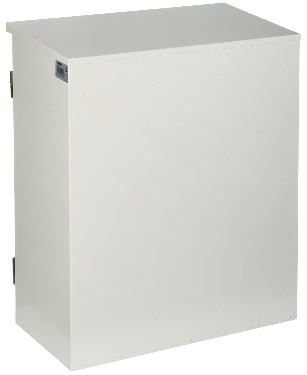 Material: Aluminum PA11 ; Color: Light gray (RAL 7035) ; Main features: Holes for cables from the bottom : Ø 16 mm - 6 pcs "Index of Protection" : IP55 ; Housing external dimensions: 750 x 595 x 322 mm ; Internal dimensions: 580 x 710 x 285 mm ;