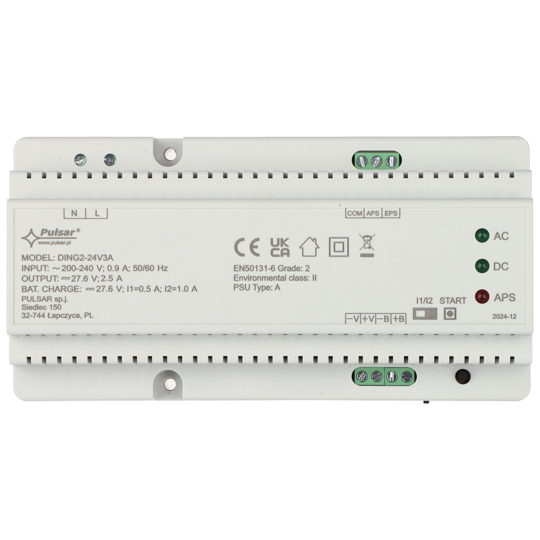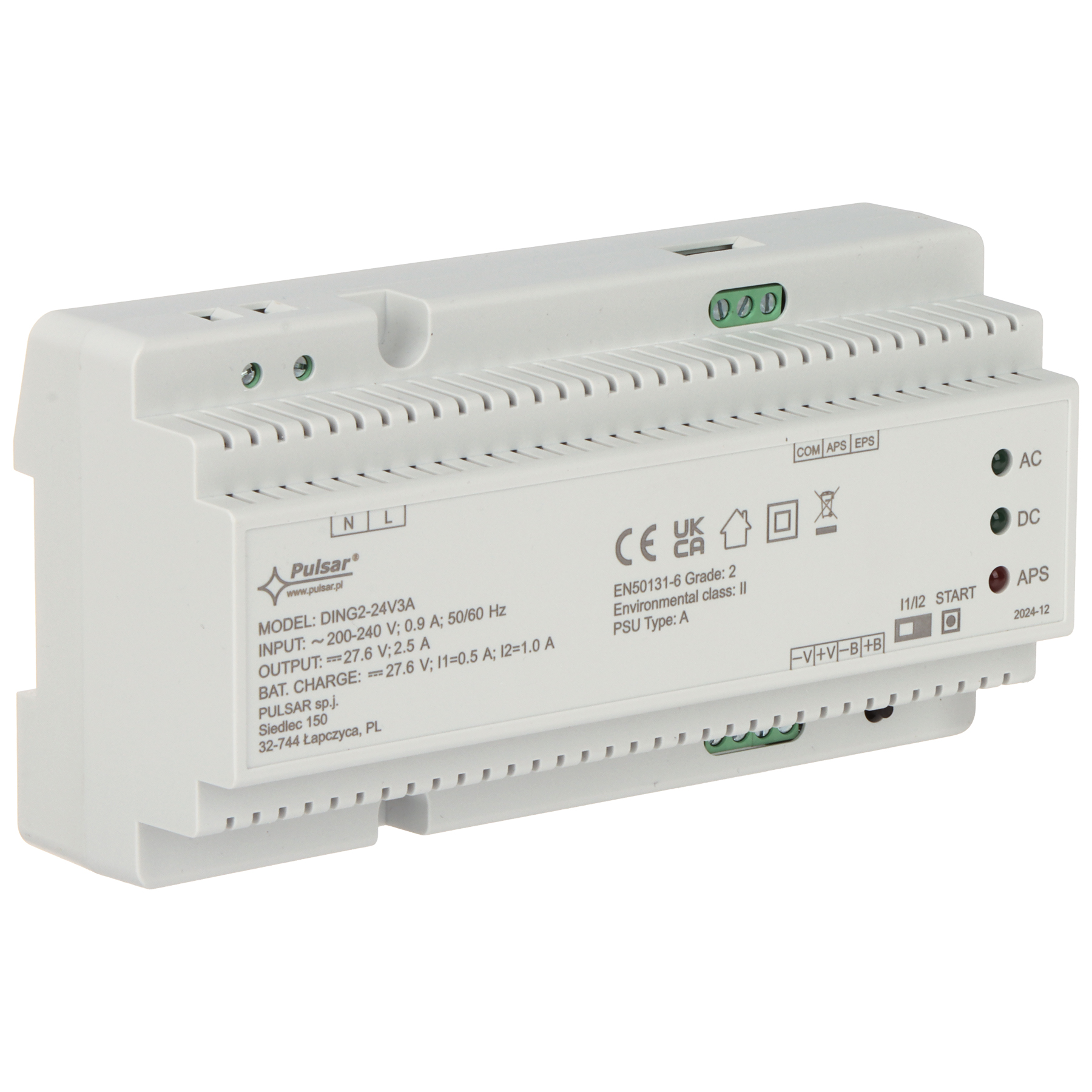 Input voltage: 200 ... 240 V AC ; Output voltage: 27.6 V DC ; Max. output current (total): 2 A ; Battery charging current: 0.5 / 1 A ; Adapter operation control: EPS FLT output - indicating AC power collapse, APS FLT output - Battery fault indication ; Main features: Grade 2 ; Weight: 0.4 kg ;