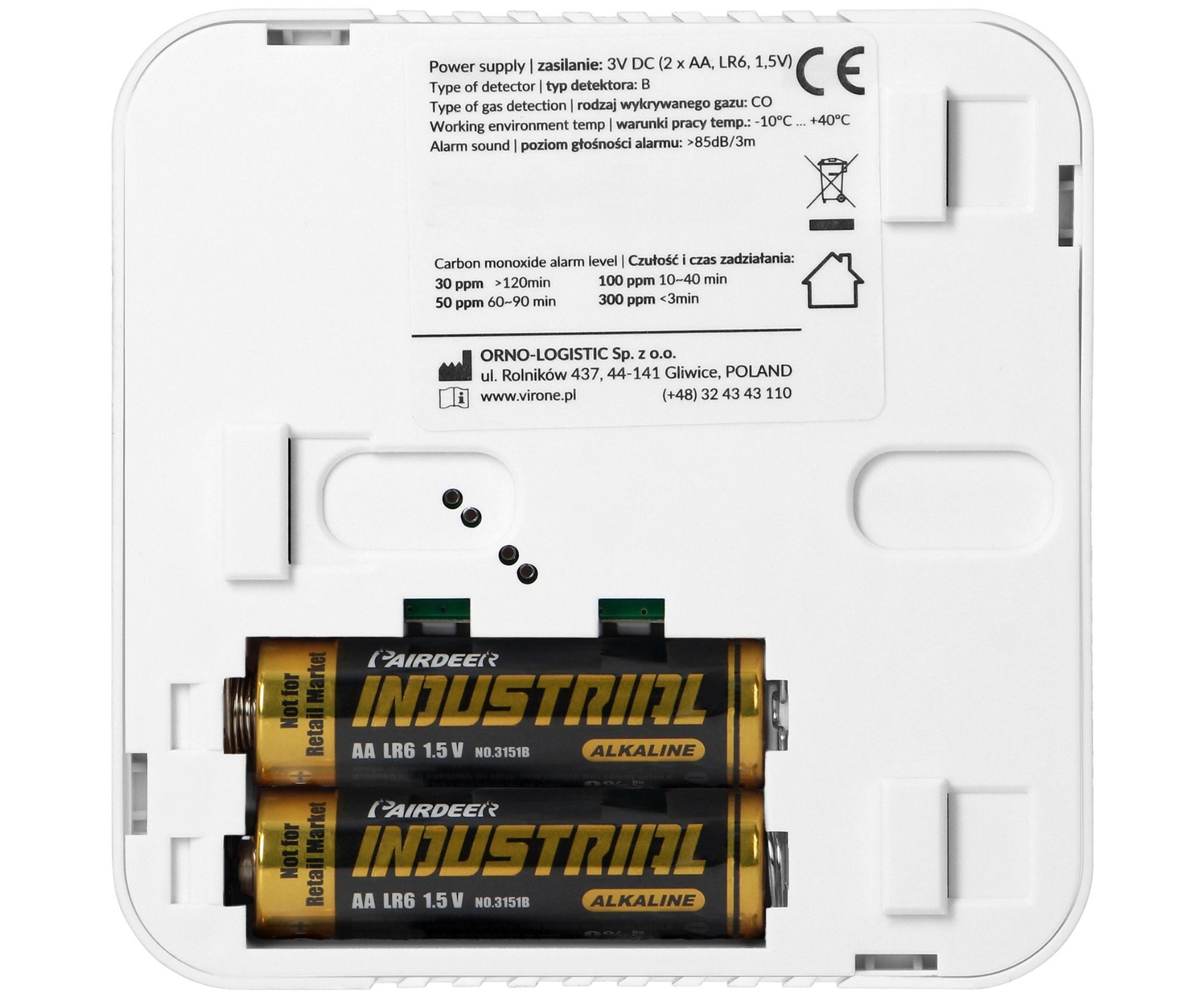 Detection: Carbon Monoxide (CO) ; Battery power supply: 2 x battery LR6 (AA) (included) ; Main features: LCD display ;