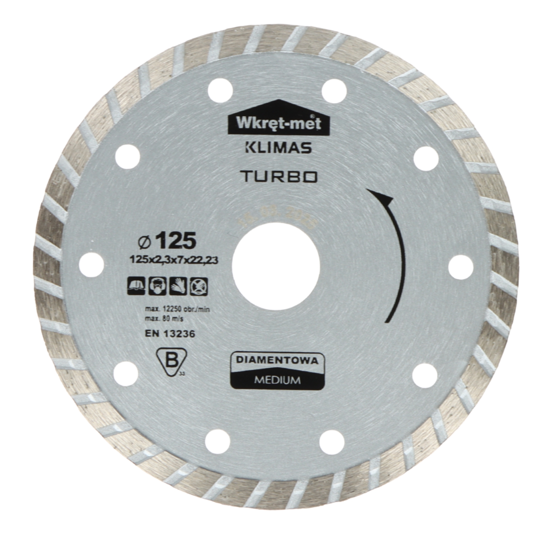 Application: Cutting of concrete, tiles, bricks, hollow masonry units, natural stone ; Disc diameter: 125 mm ; Disc thickness: 2.3 mm ; Montage hole diameter: 22.23 mm ; Maximum RPM: 12250 RPM ; Weight: 119 g ;