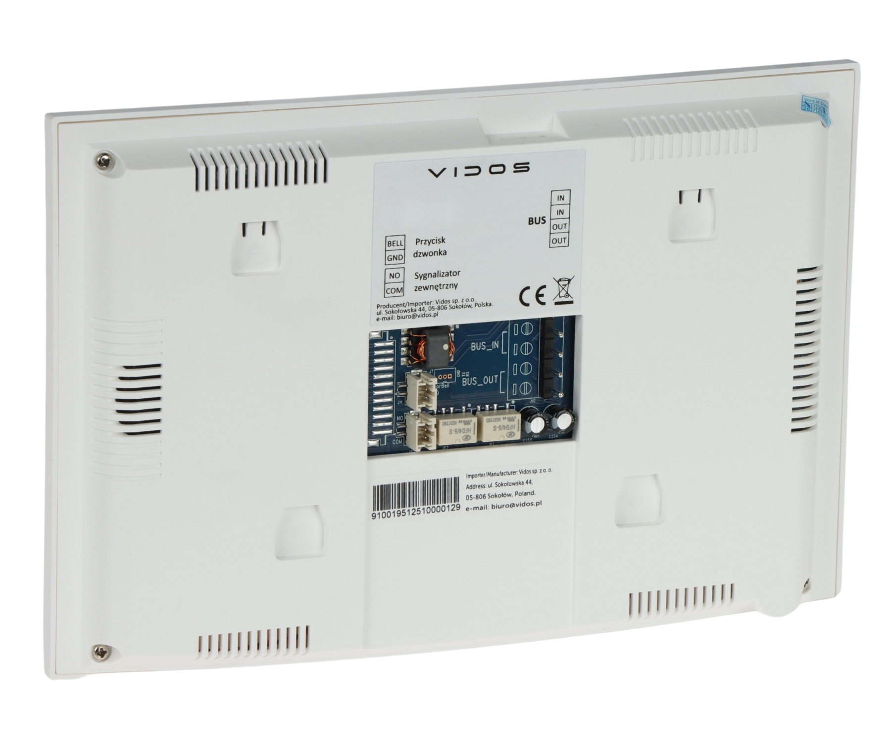 Compatibility: VIDOS 2IP ; Shield: 7 " touch screen ; Resolution: 1024 x 600 px ; Main features: Automatic or manual image recording Volume adjustment, ; Power supply: 32 V DC ;