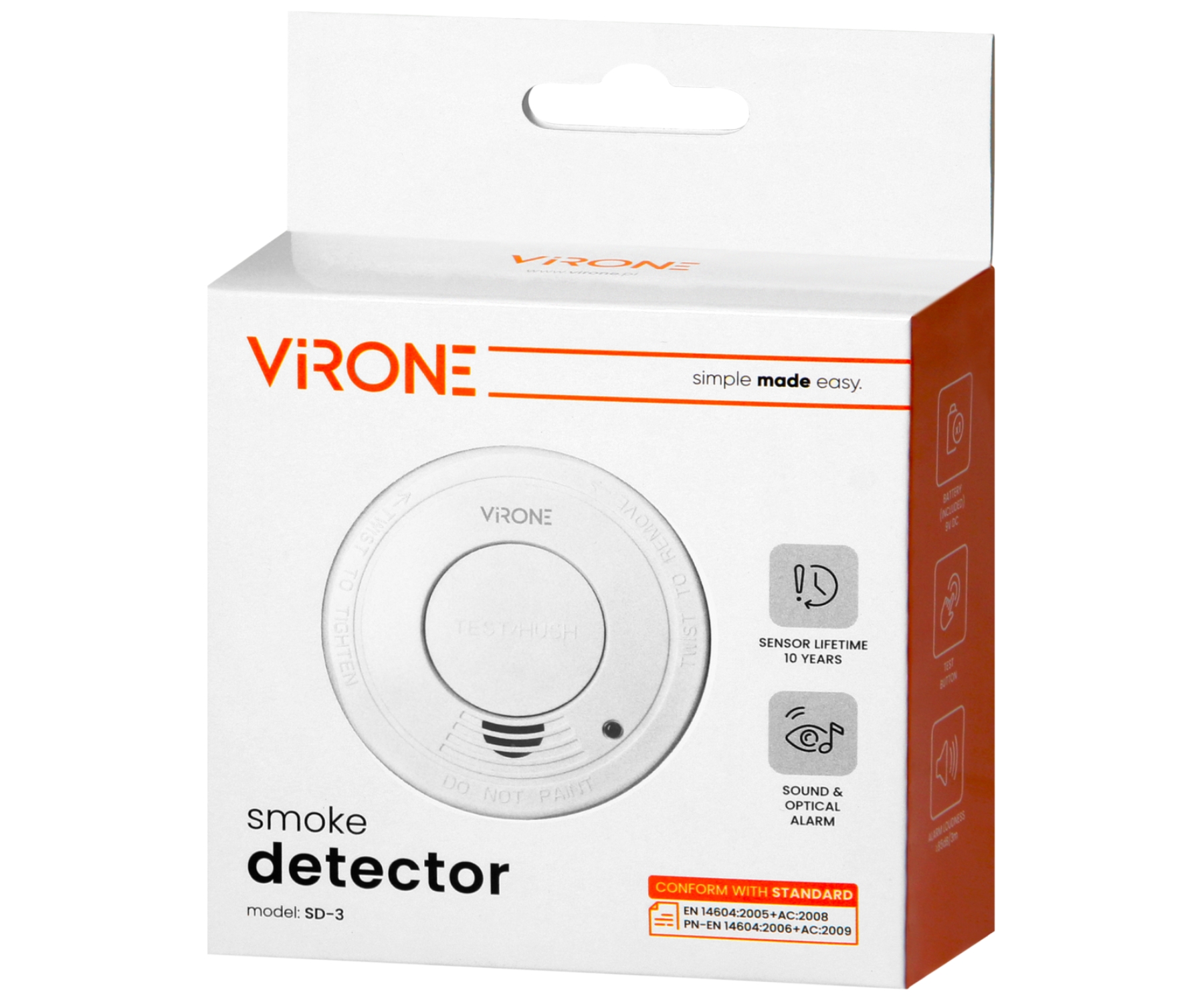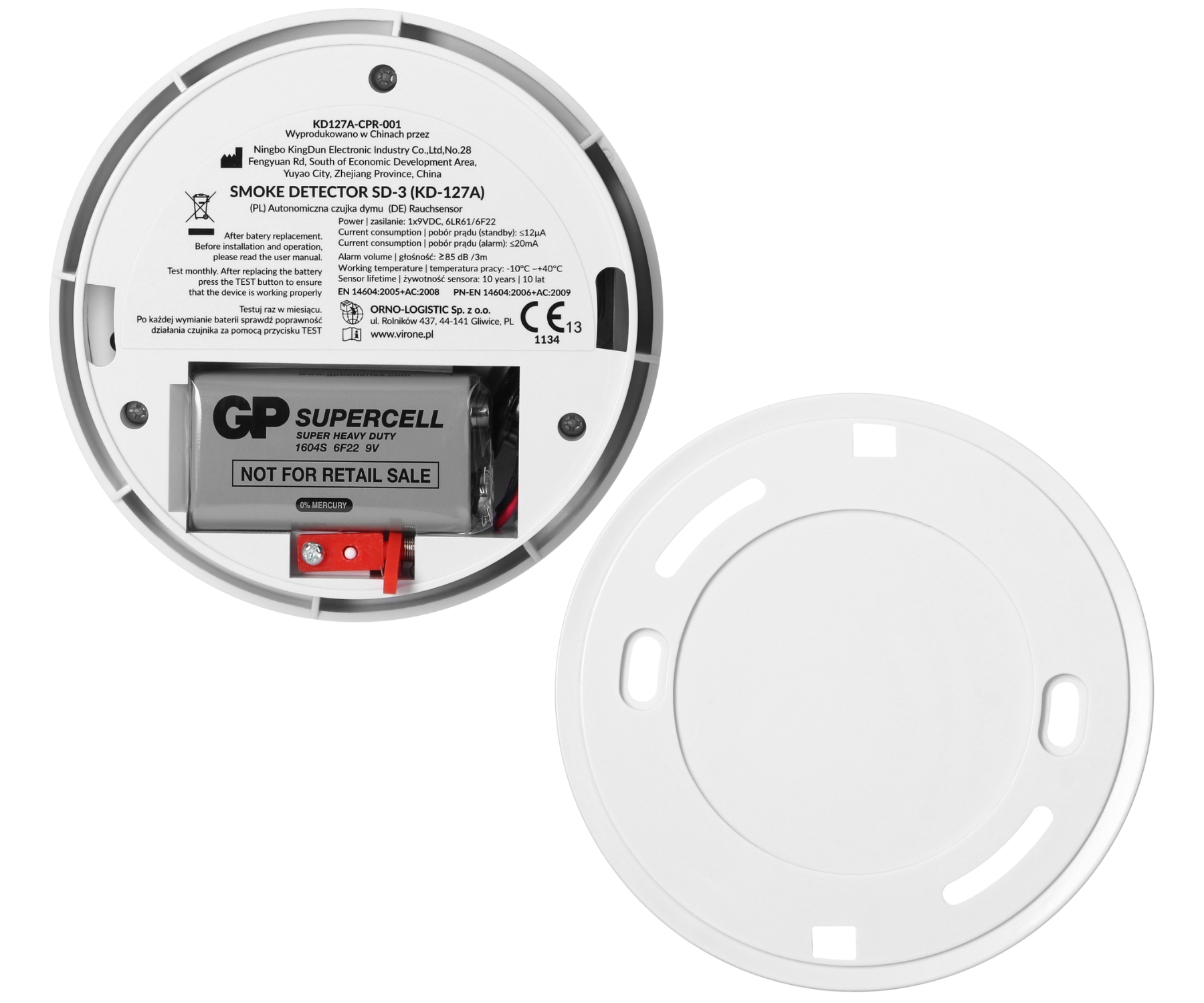 Detection: smoke ; Alarm signaling: LED indicator Acoustic (buzzer) ; Battery power supply: 9V, type 6LR61 battery ; Main features: Low battery level alarm ;