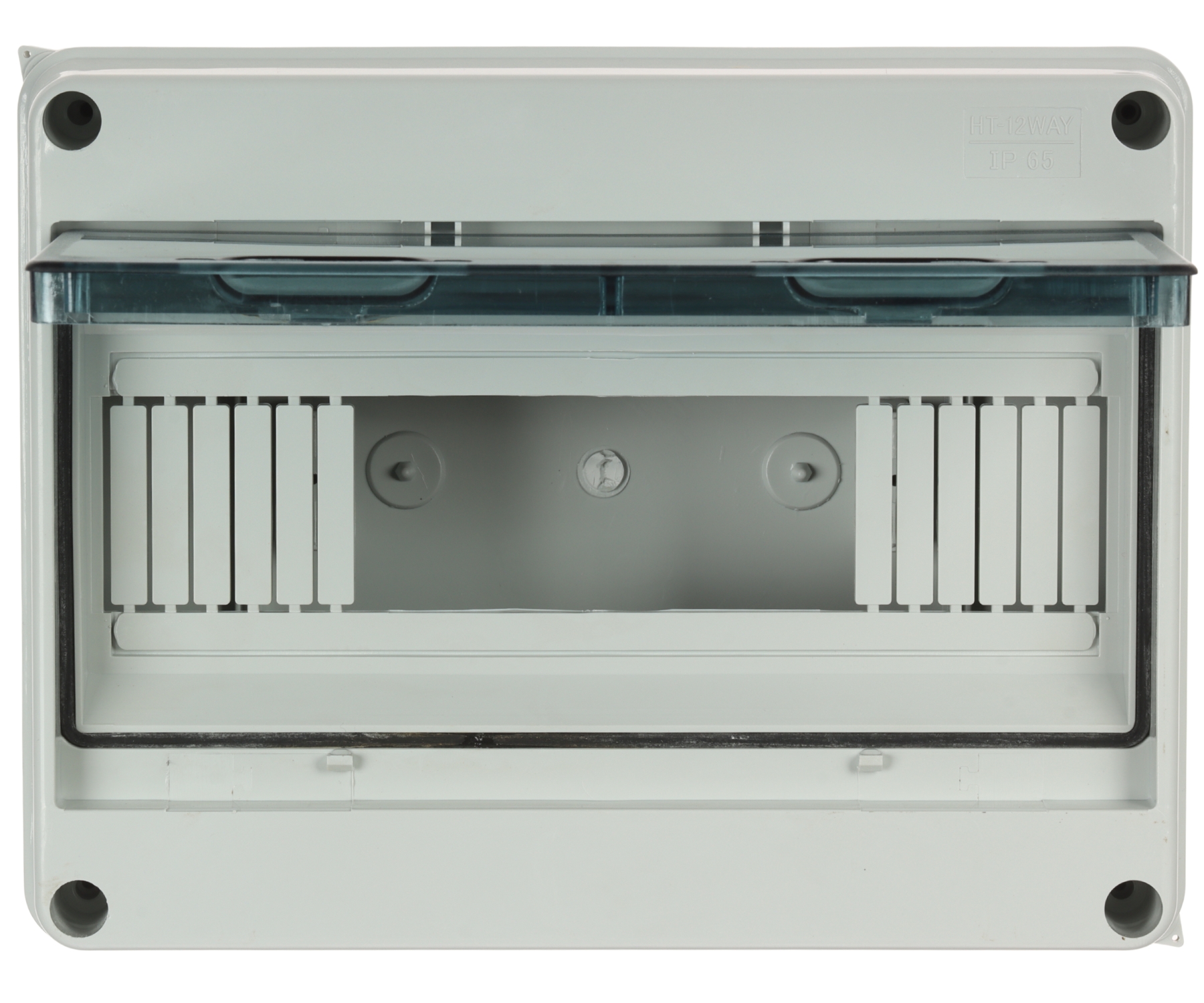Number of mounted modules: 12 x 1 row ; Transparent door; "Index of Protection": IP65 ; Dimensions: 250 x 193 x 105 mm ;