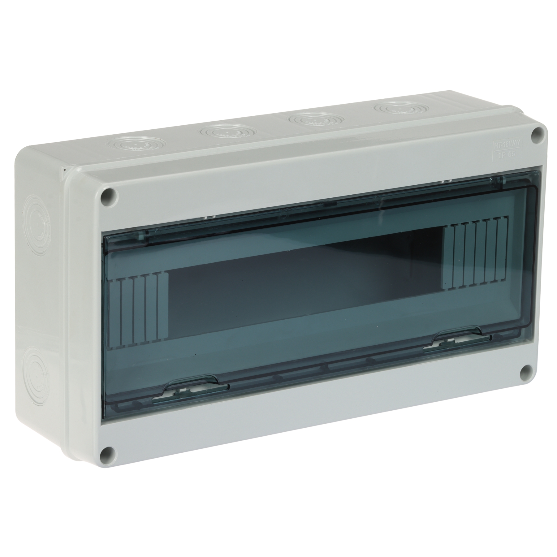Number of mounted modules: 18 x 1 row ; Transparent door; "Index of Protection": IP65 ; Dimensions: 360 x 198 x 105 mm ;