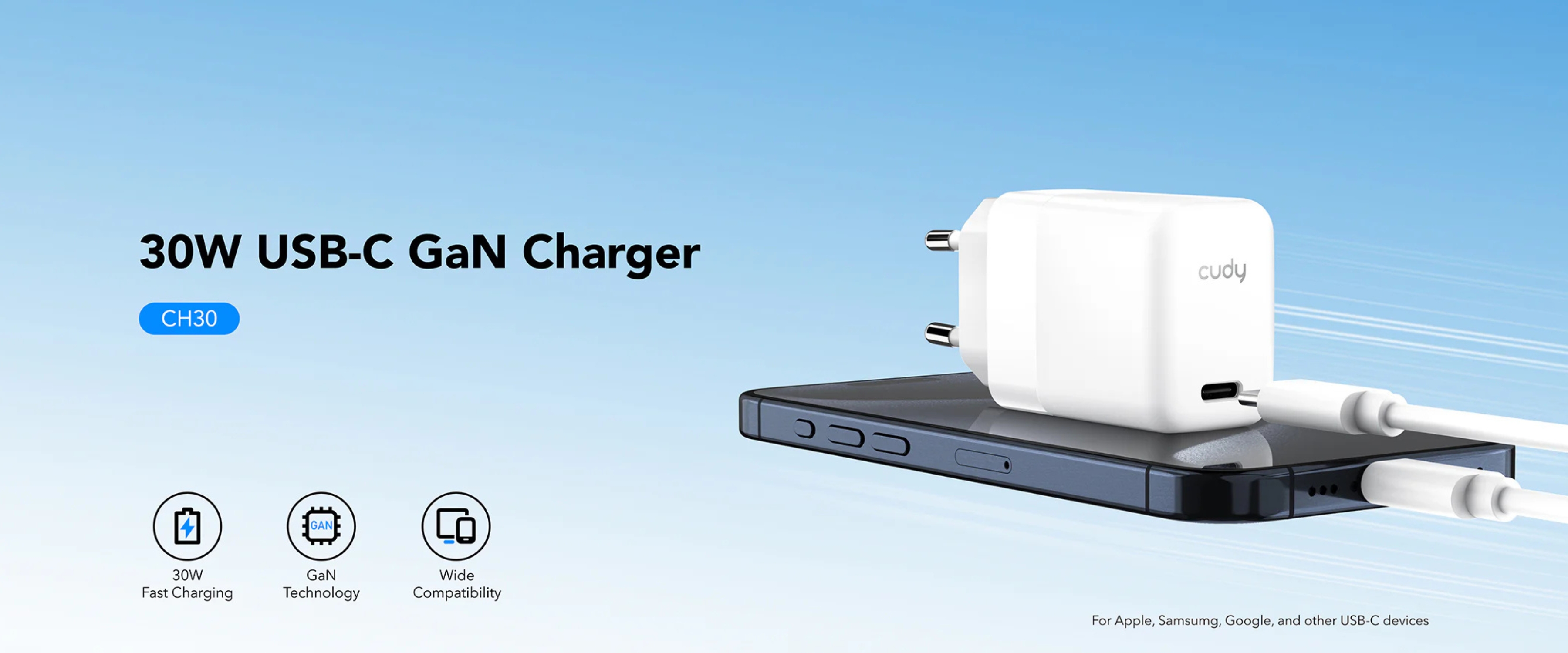 USB-C MAINS CHARGER CH30_EU 30 W GaN CUDY