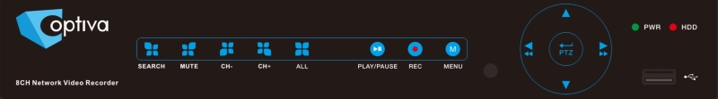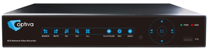 Регистратор NVR OPTIVA, 8x кам. IP, вых.вид VGA,HDMI, битрейд 100Mb/s, 8x1080p, макс. 2x6TB, ONVIF,тревож вх/вых: 8/1, 1x1GbE, 12VDC