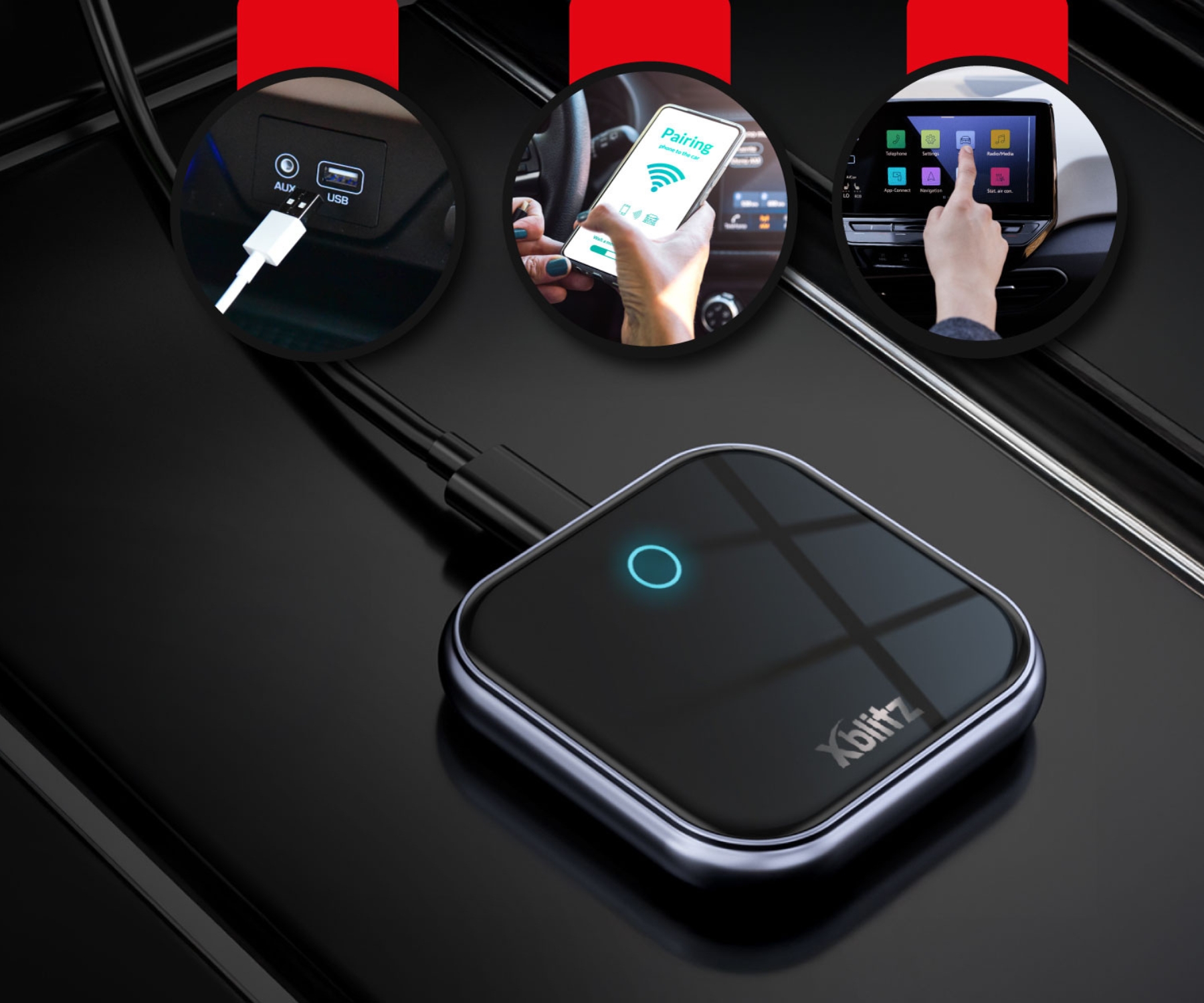 Support: Cars with factory Android Auto or Apple CarPlay since 2015 ; Communication interface: WiFi, Bluetooth 5.3 ; Inputs: USB-C ; Main features: Ability to use Android Auto and Apple CarPlay without connecting your phone with a cable, Integration with vehicle touch screen, Voice control ; Power supply: 5 V DC / 1 A ;