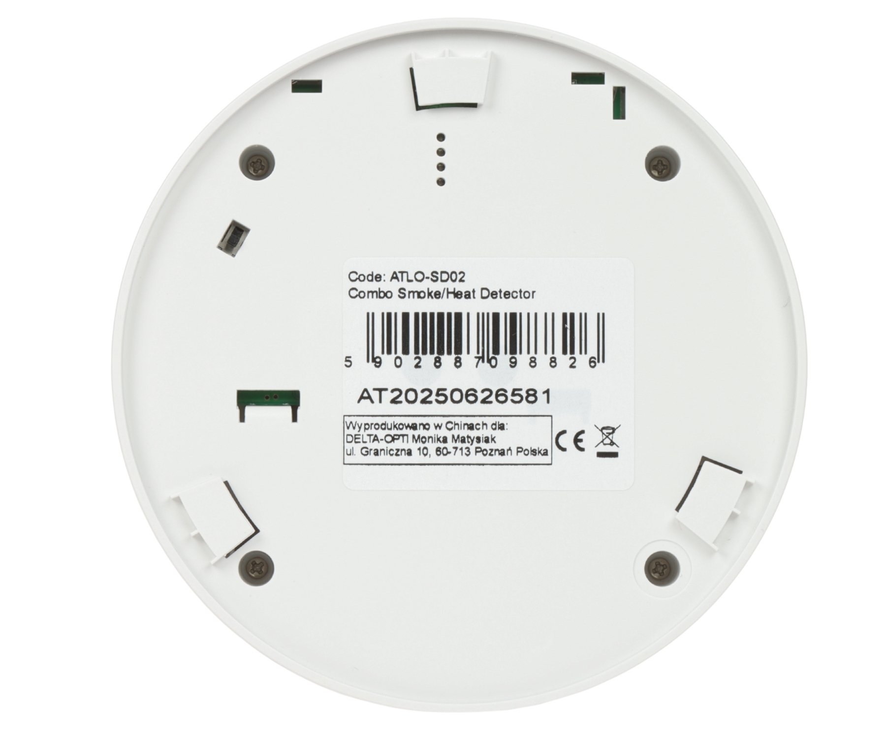 Detection: smoke, cigarette smoke, heat ; Battery: Non-replaceable 3V battery ; Backup time: ~ 10 years ; Main features: Sound signaling : 85 dB/m ;
