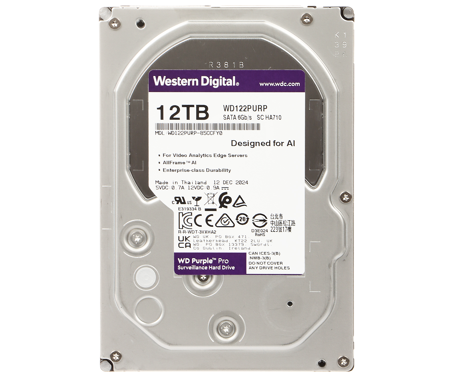 HDD FOR DVR HDD-WD122PURP 12TB 24/7 WESTERN DIGITAL