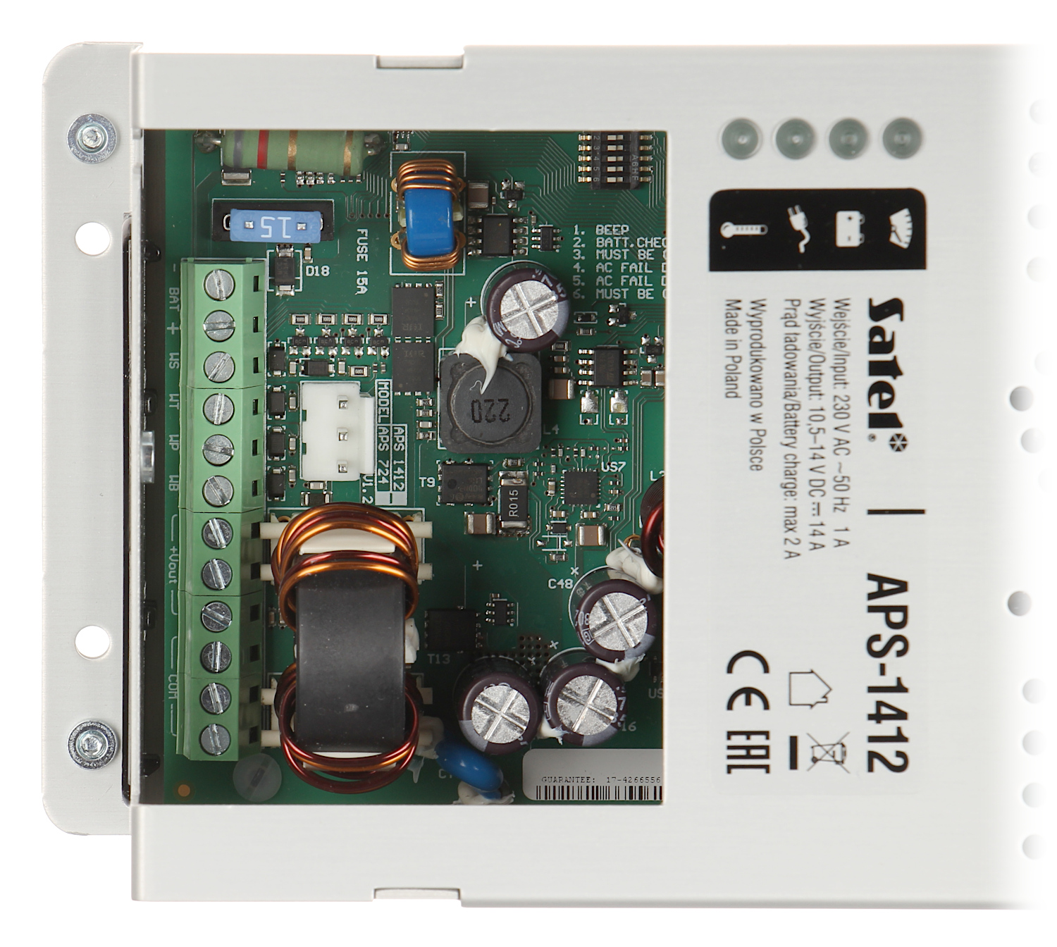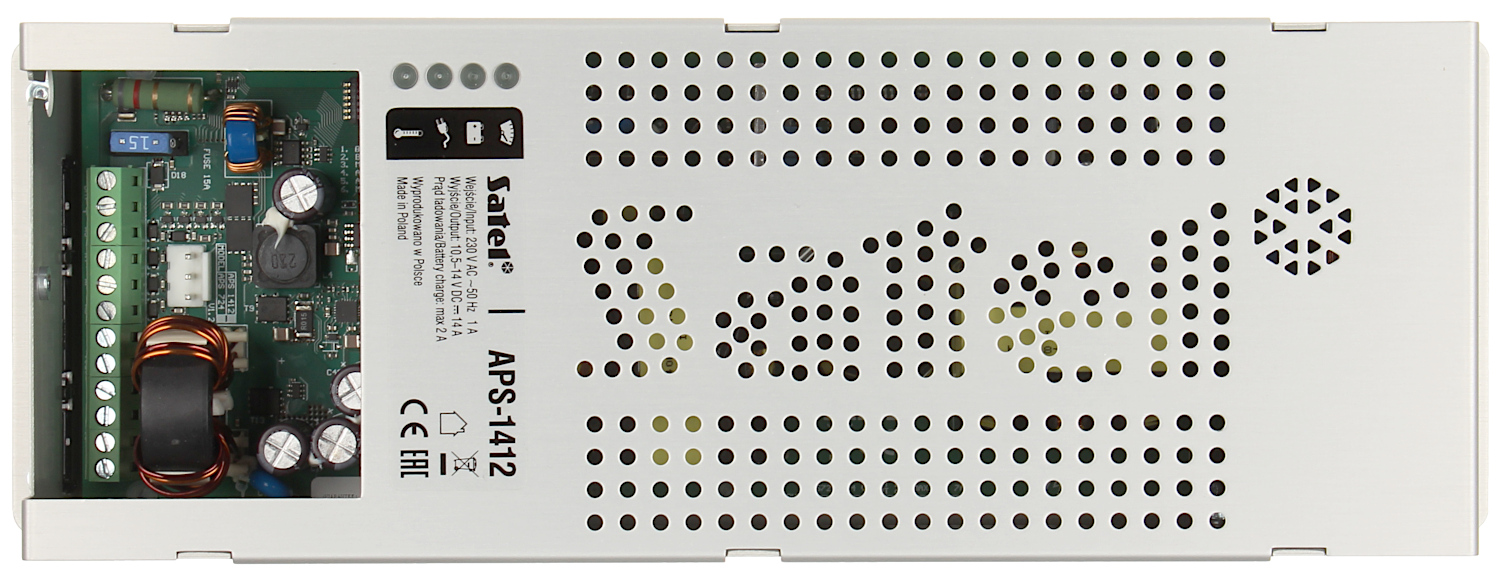 Input voltage: 230 V AC ; Output voltage: 12 V DC ; Max. output current (total): 14 A ; Battery charging current: 2 A ; Adapter operation control: WS output - indicating AC power collapse ; Weight: 1.18 kg ;