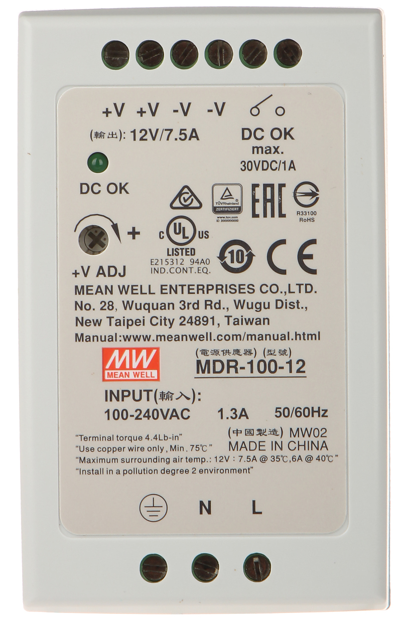 Output voltage: 12 V DC ; Output voltage adjustment: 12 ... 15 V ; Maximal load: 7.5 A ; Output power: 90 W ;